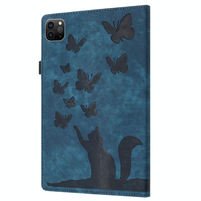 For iPad Pro 11 2024 Butterfly Cat Embossing Leather Tablet Case(Dark Blue)