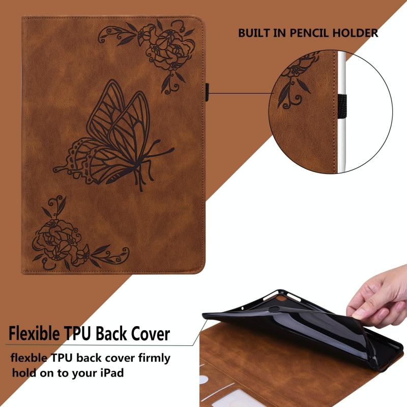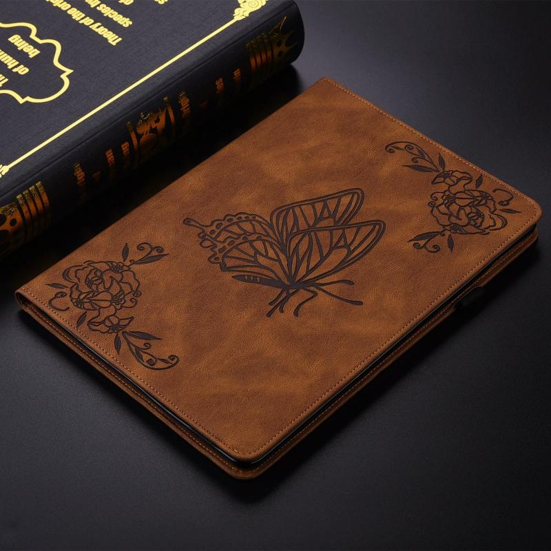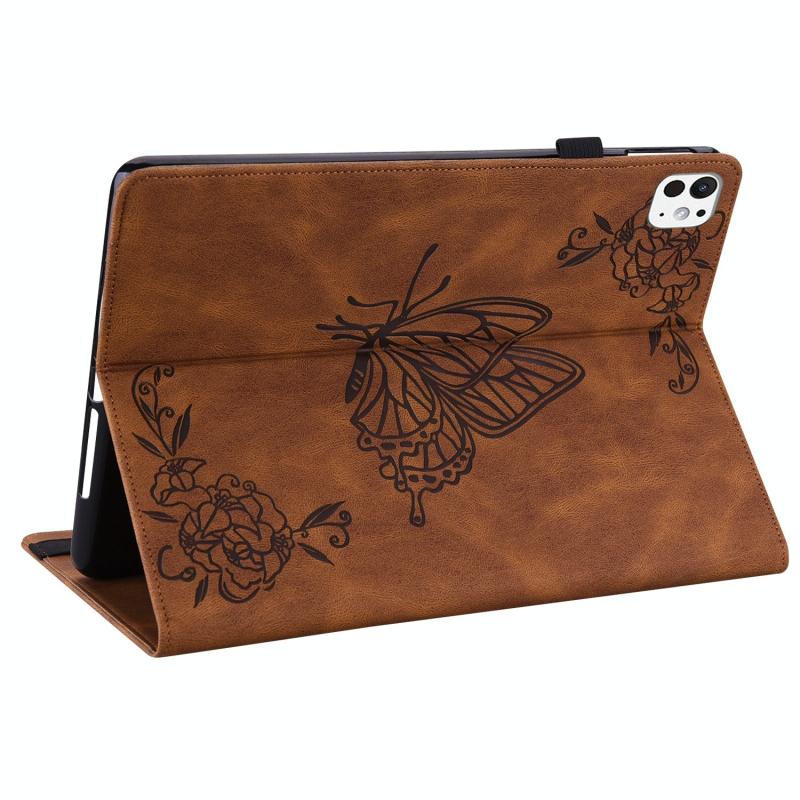 For iPad Pro 11 2024 Butterfly Flower Embossed Leather Tablet Case(Brown)