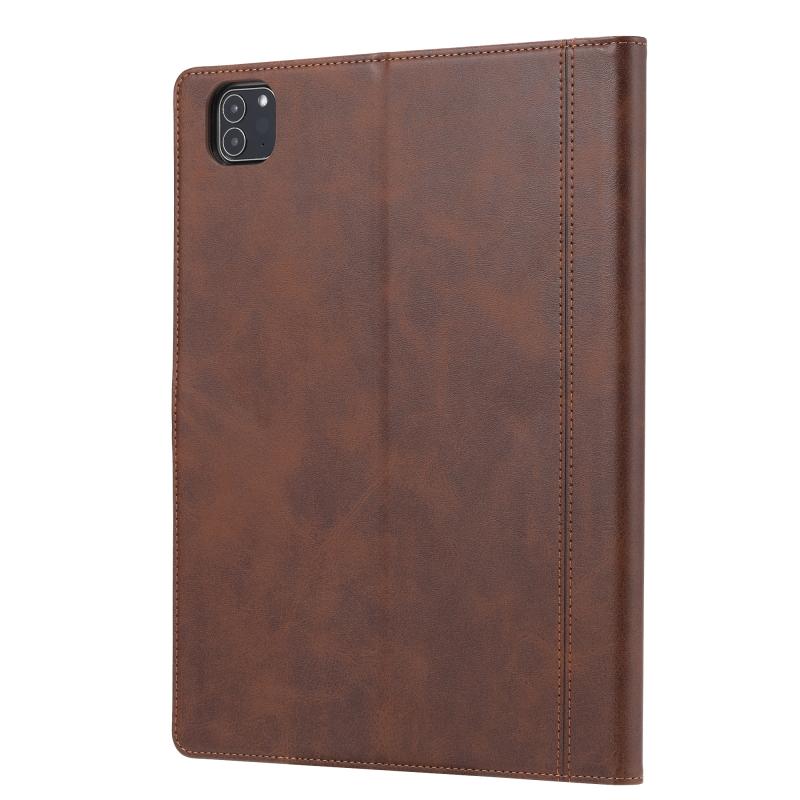 For iPad Pro 11 2024 Calf Texture Double Fold Clasp Horizontal Flip Leather Smart Tablet Case(Brown)
