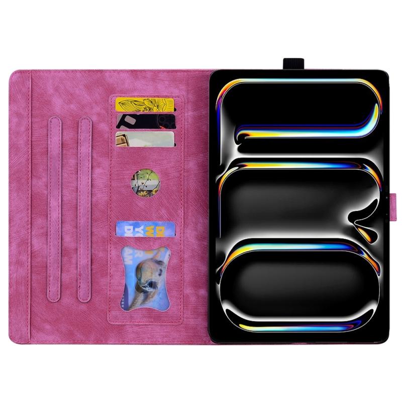 For iPad Pro 11 2024 Cartoon Sakura Cat Embossed Smart Leather Tablet Case(Rose Red)