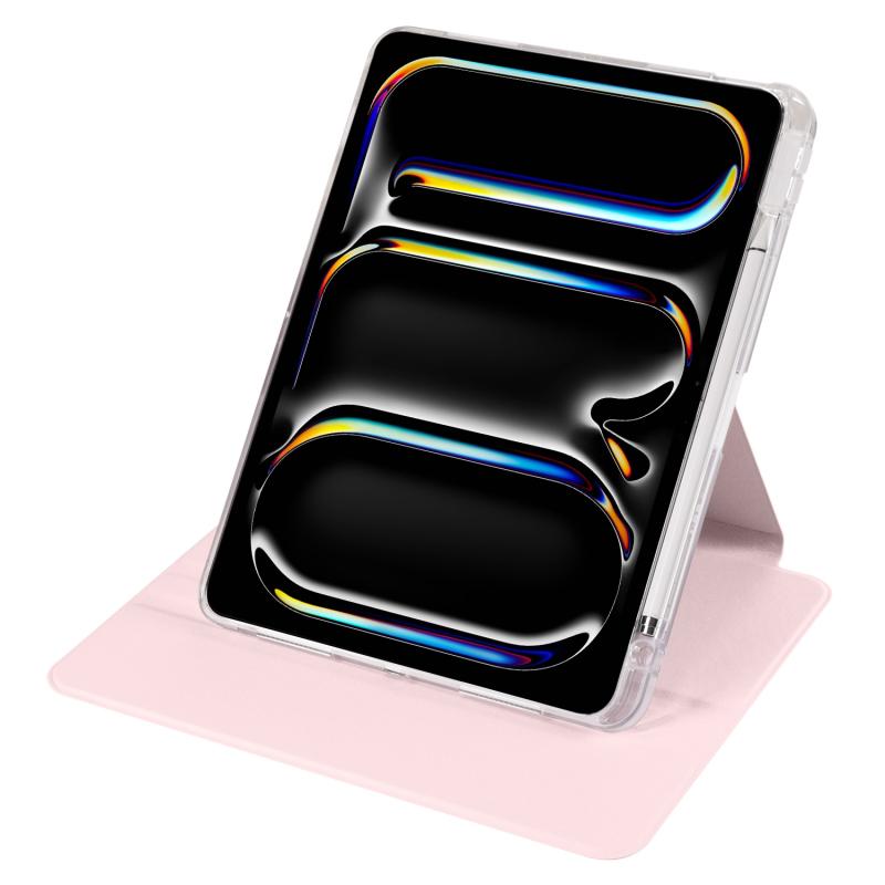 For iPad Pro 11 2024 Clear Acrylic 360 Rotation Detachable Leather Tablet Case(Pink)