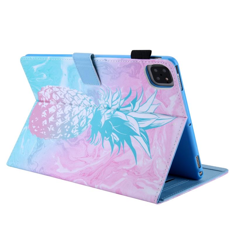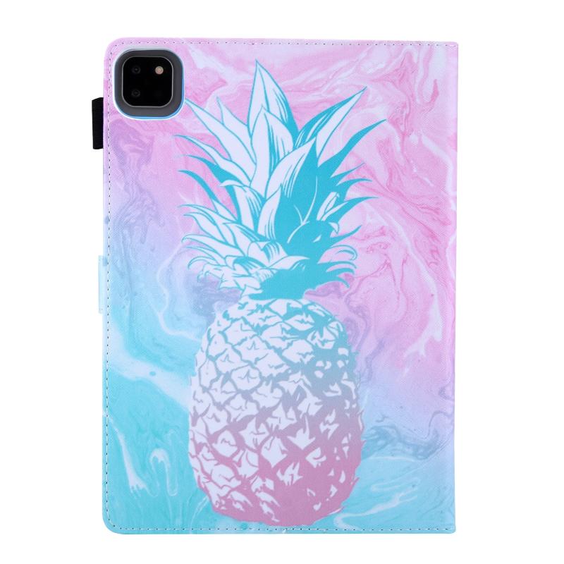 For iPad Pro 11 2024 Colored Drawing Leather Smart Tablet Case(Blue Pink Pineapple)