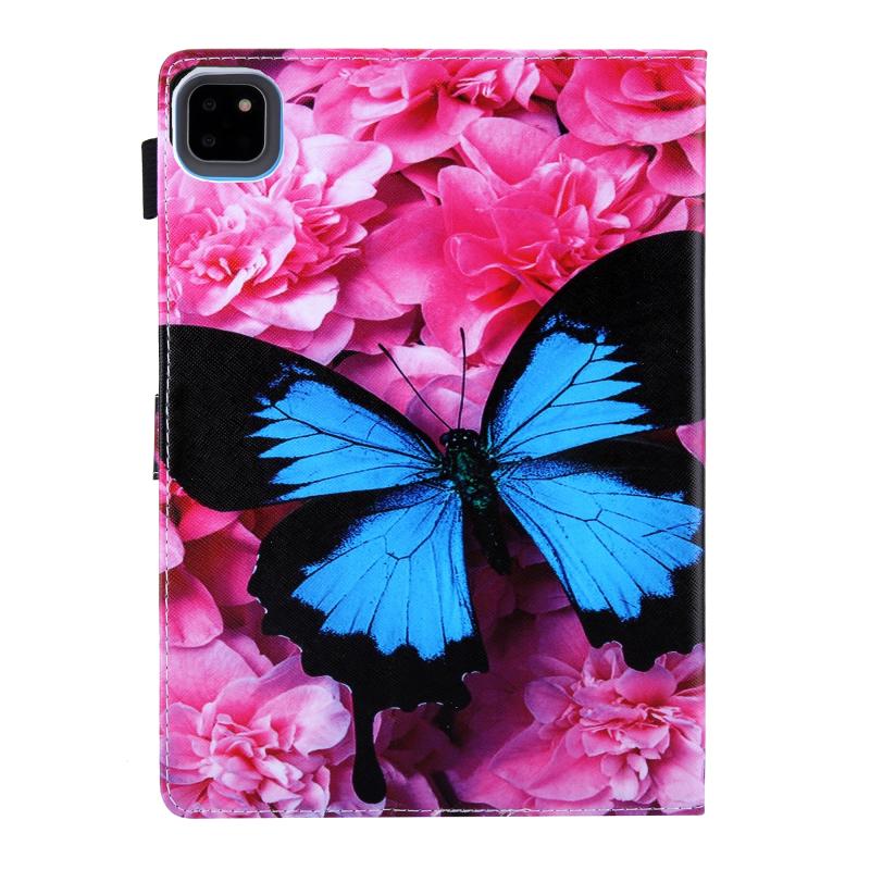 For iPad Pro 11 2024 Colored Drawing Leather Smart Tablet Case(Red Flower Blue Butterfly)