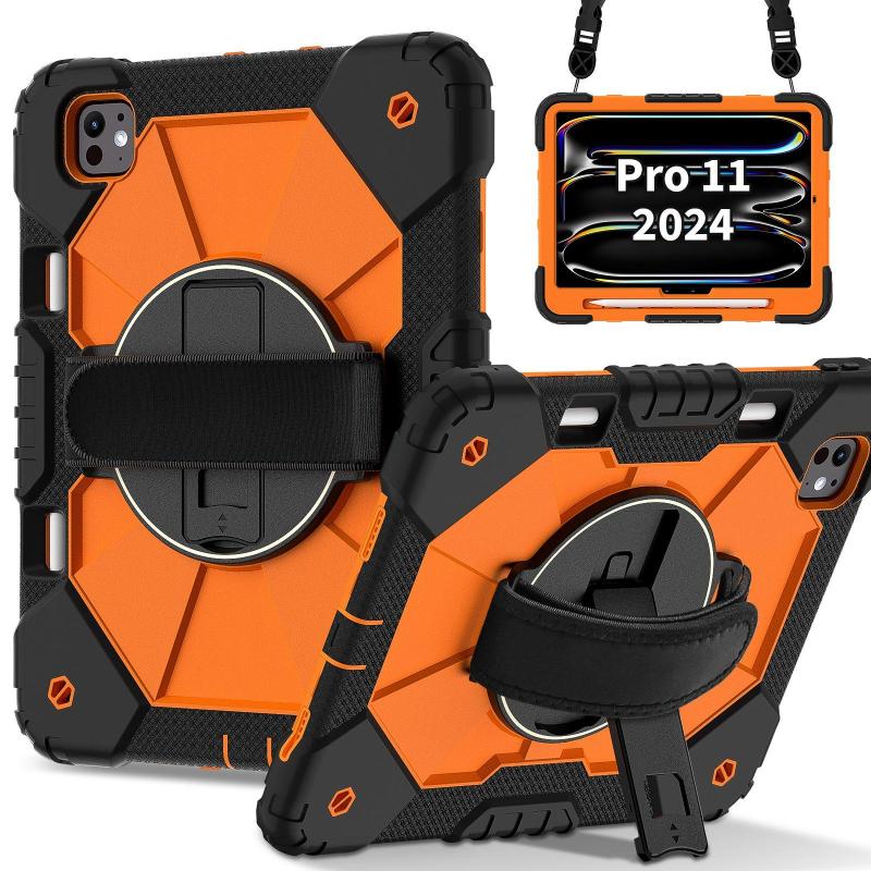 For iPad Pro 11 2024 Contrast Color Robot Silicone Hybrid PC Tablet Case(Black Orange)