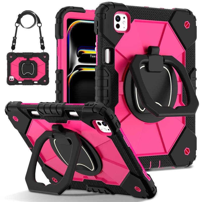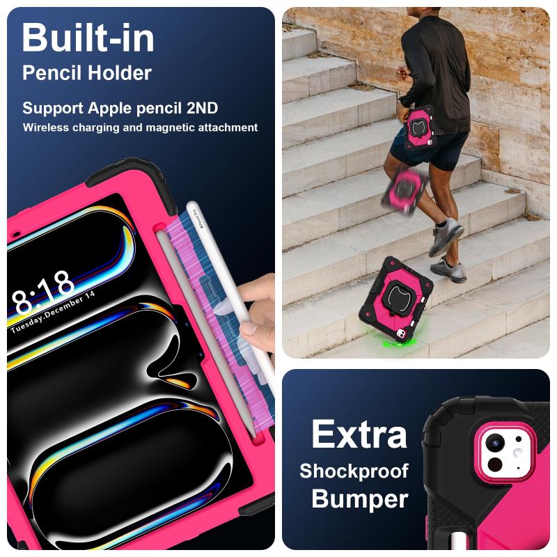 For iPad Pro 11 2024 Contrast Color Robot Silicone Hybrid PC Tablet Case(Black Rose Red)