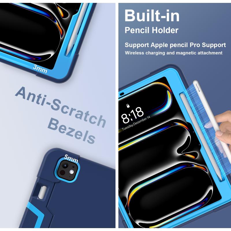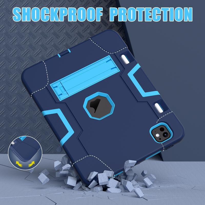 For iPad Pro 11 2024 Contrast Color Silicone Acrylic PC Tablet Case with Holder(Navy Blue)
