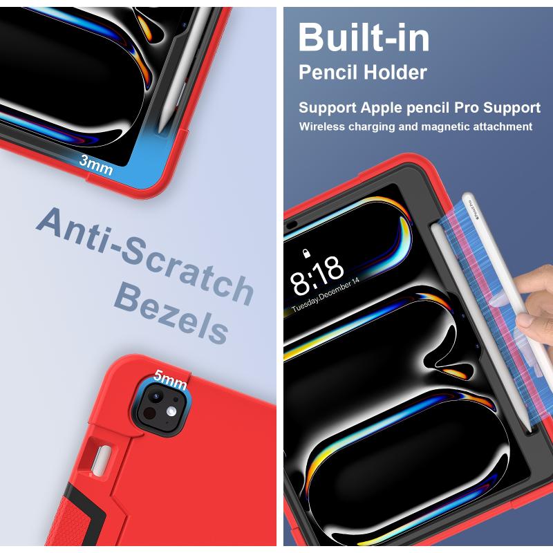 For iPad Pro 11 2024 Contrast Color Silicone Acrylic PC Tablet Case with Holder(Red Black)