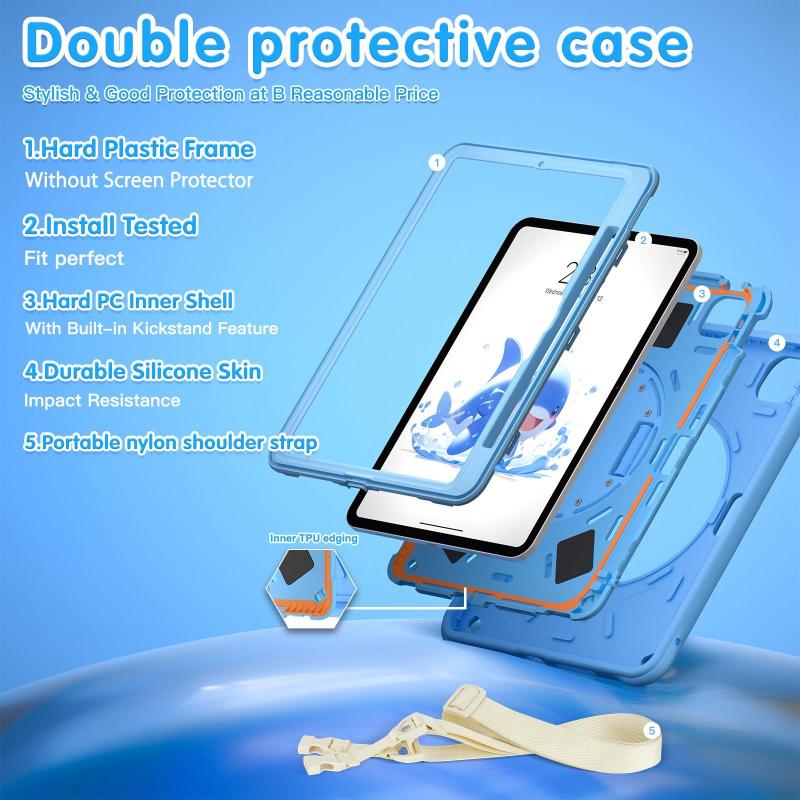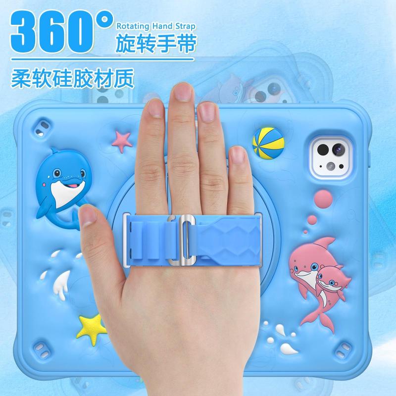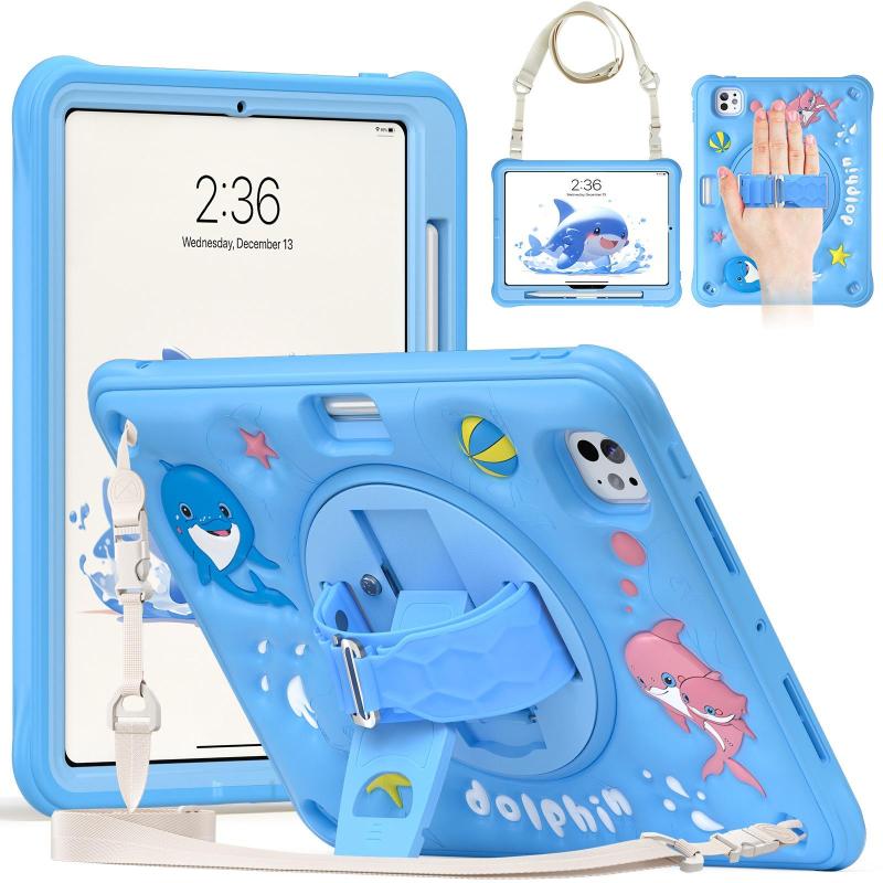 For iPad Pro 11 2024 Dolphin Rotation Kickstand Silicone Hybrid PC Tablet Case(Blue)