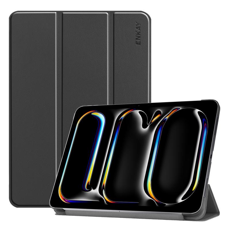 For iPad Pro 11 2024 ENKAY Tri-fold Custer Texture Platic Leather Smart Tablet Case(Black) (ENKAY)