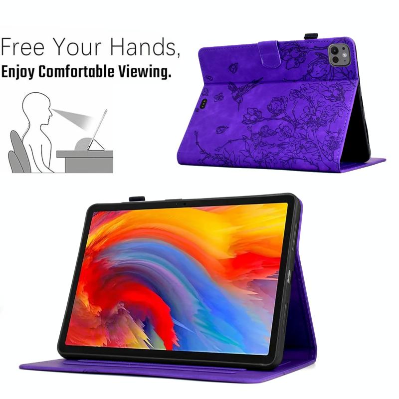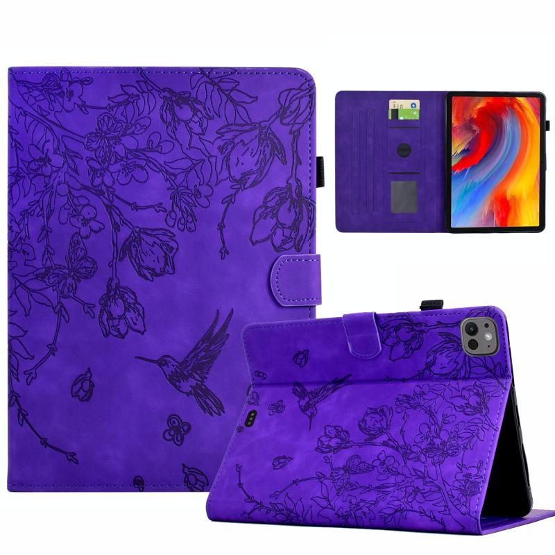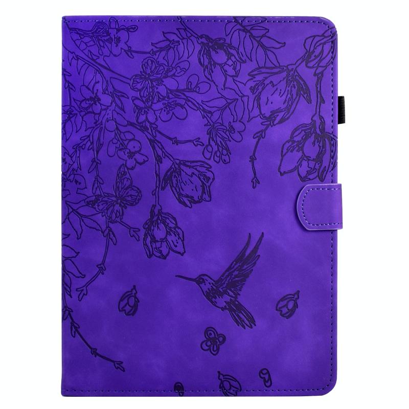 For iPad Pro 11 2024 Flowers and Bird Embossed Smart Leather Tablet Case(Purple)