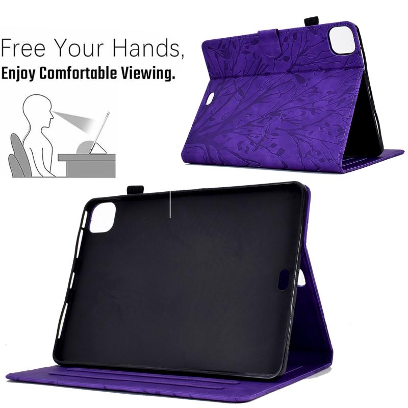 For iPad Pro 11 2024 Fortune Tree Embossed Leather Smart Tablet Case(Purple)