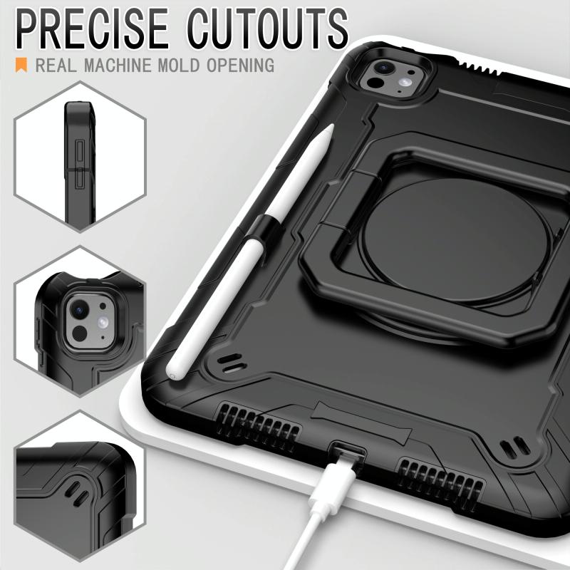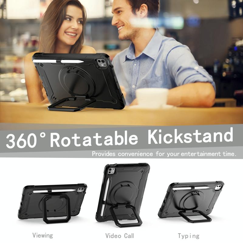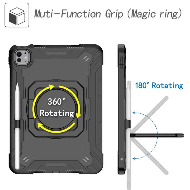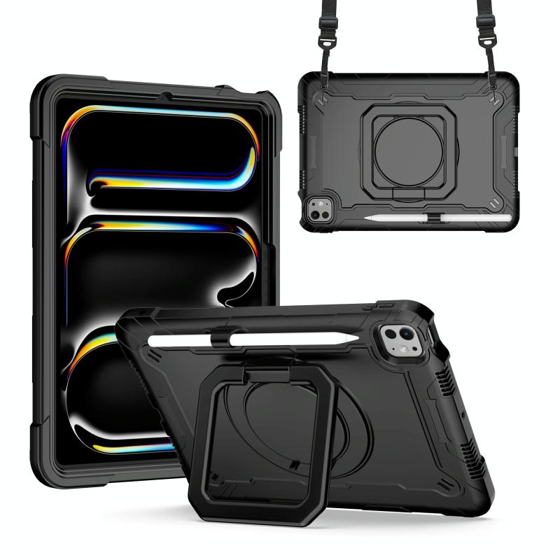 For iPad Pro 11 2024 Handle Grip Holder Silicone Hybrid PC Tablet Case with Strap(Black)