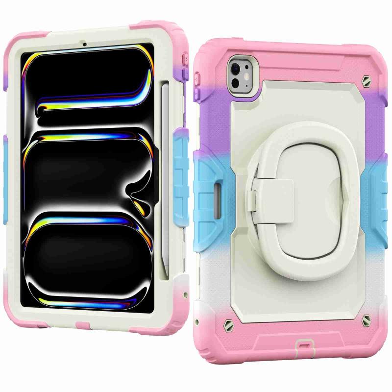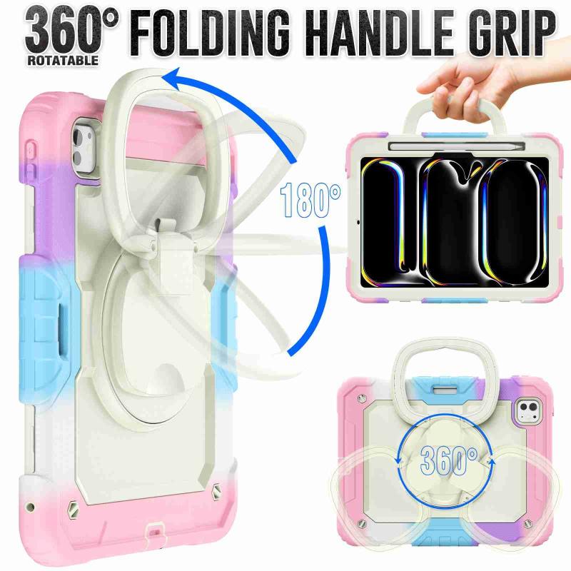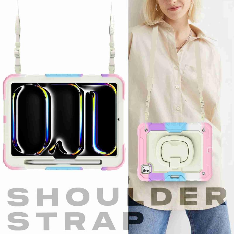 For iPad Pro 11 2024 Handle Silicone Hydric PC Tablet Case with Shoulder Strap(Camouflage Pink)