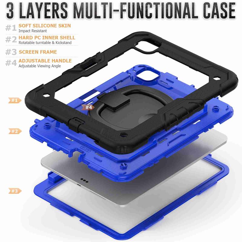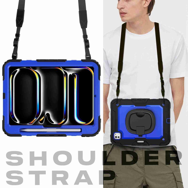 For iPad Pro 11 2024 Handle Silicone Hydric PC Tablet Case with Shoulder Strap(Dark Blue PC)