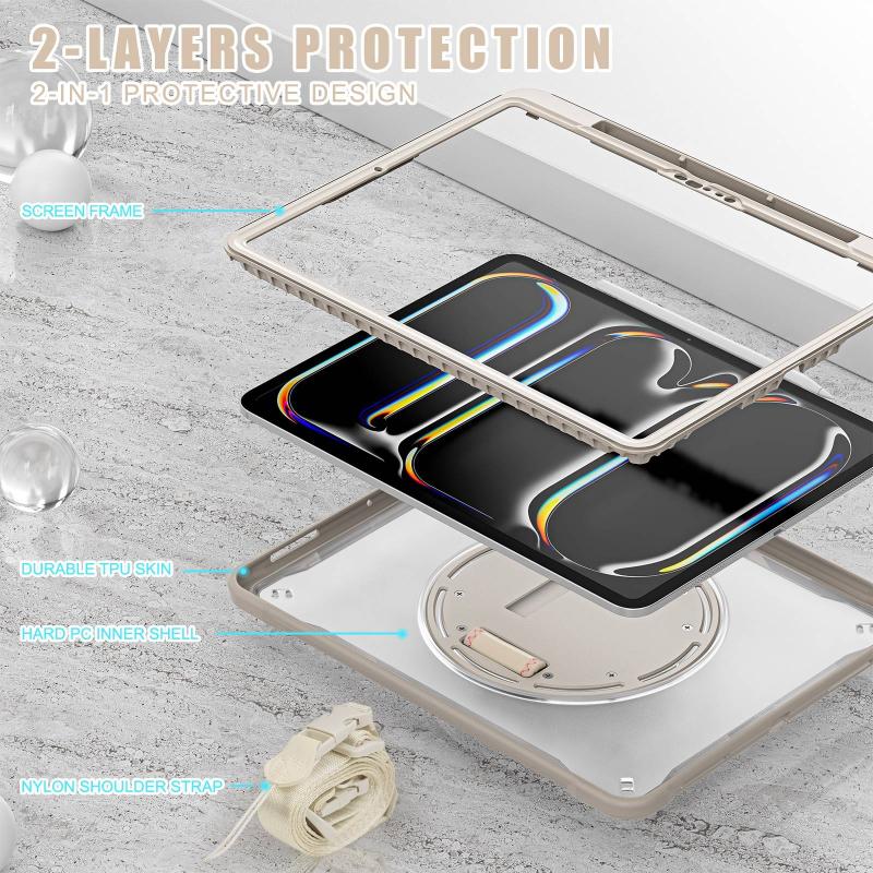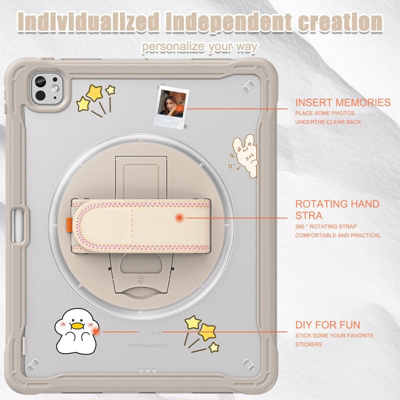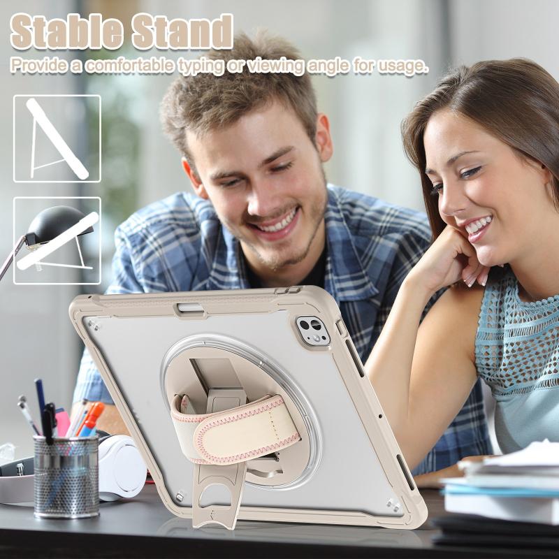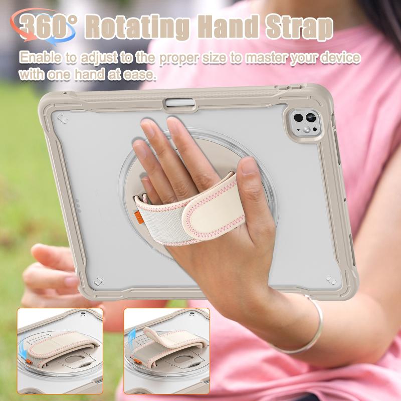 For iPad Pro 11 2024 Heavy Duty Hybrid Tablet Case with Hand Grip & Strap(Khaki)