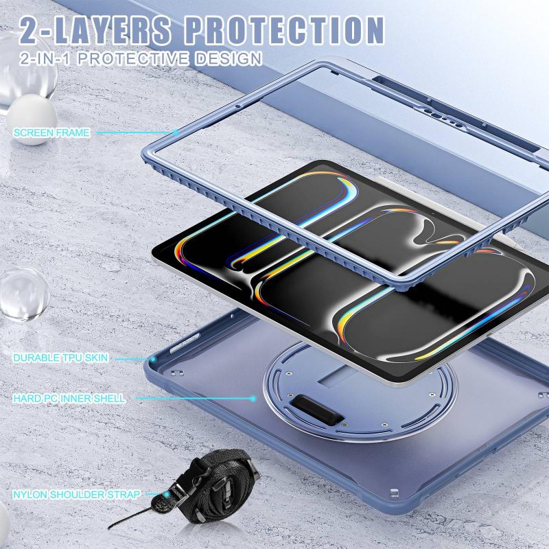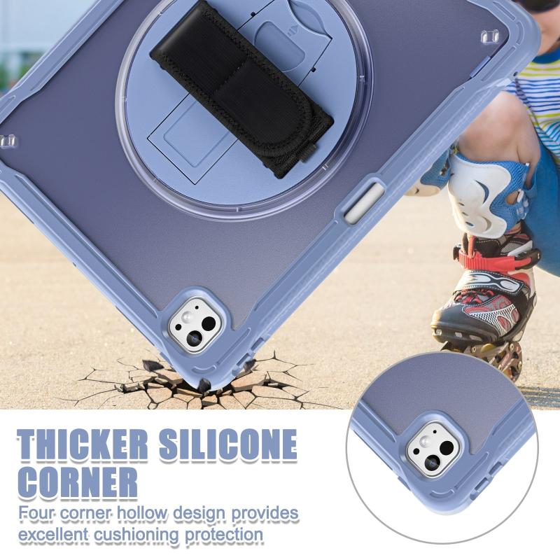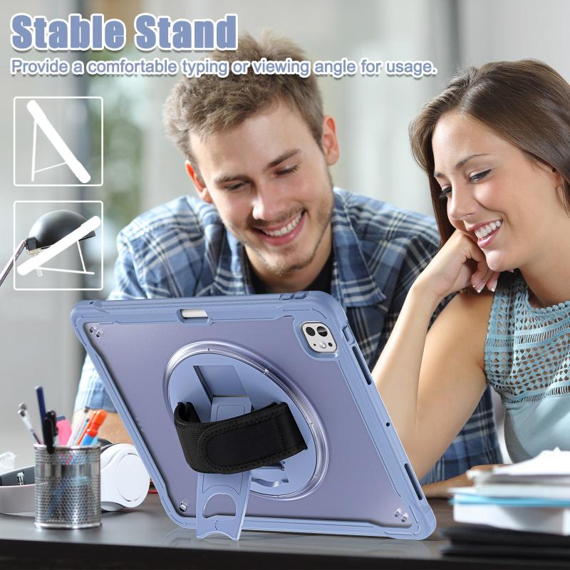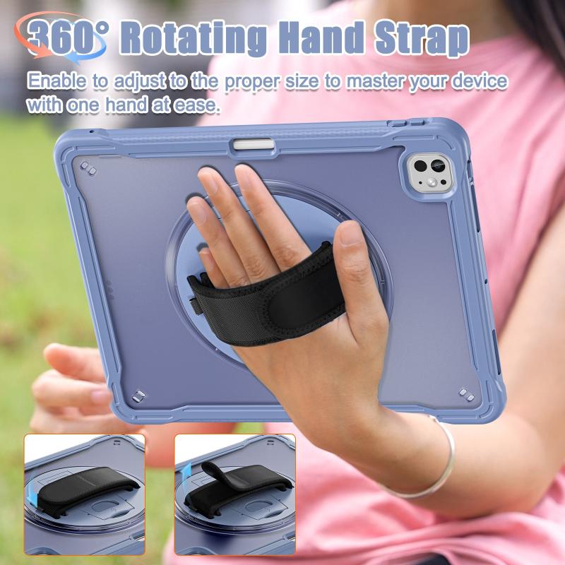 2. Adjustable Shoulder Strap: Adjustable shoulder grip can be slanted and release your hands completely. This function is perfect for traveling, restaurant ordering, home product introduction, engineer outdoor operation, teacher, etc. Also, the strap allows you to hang up your tablet behind car seat for entertainment for kids.