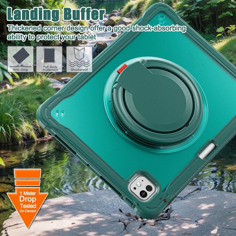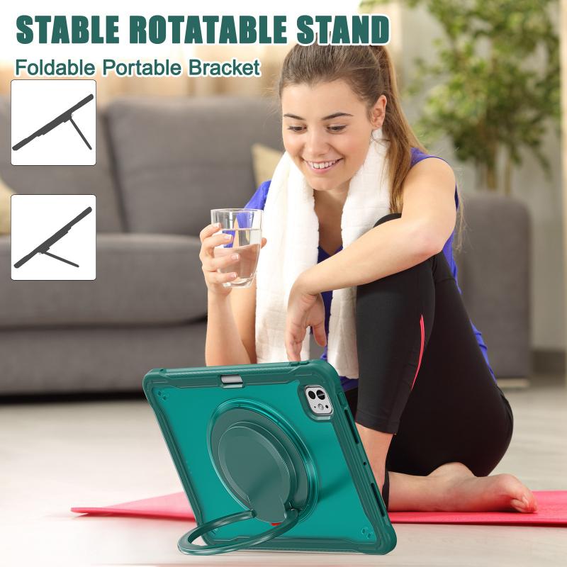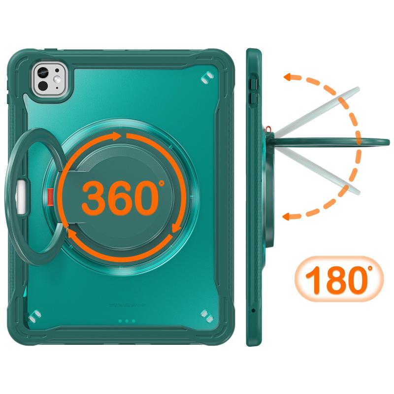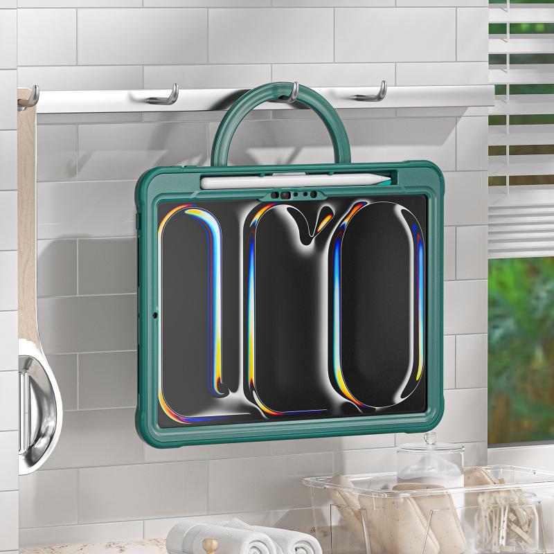 For iPad Pro 11 2024 Heavy Duty Hybrid Tablet Case with Handle & Strap(Dark Green)