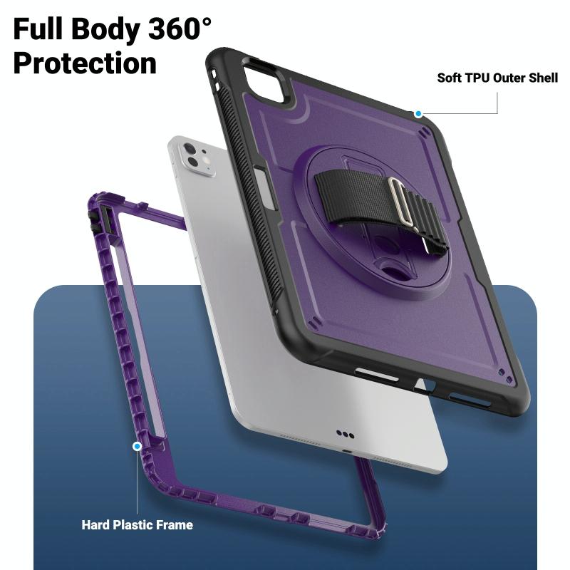For iPad Pro 11 2024 Honeycomb Hand Grip Turntable Stand Tablet Case(Purple)