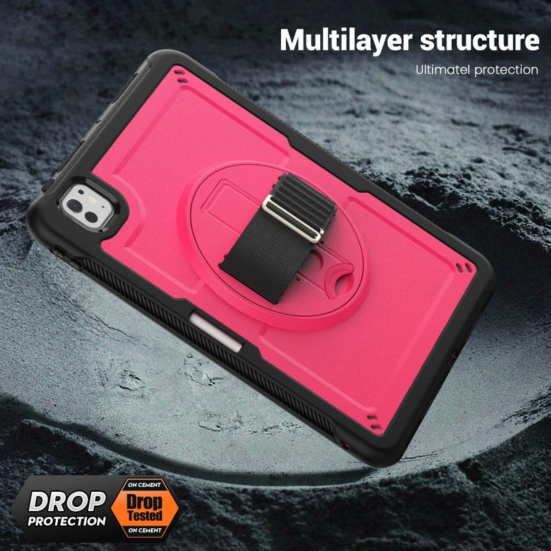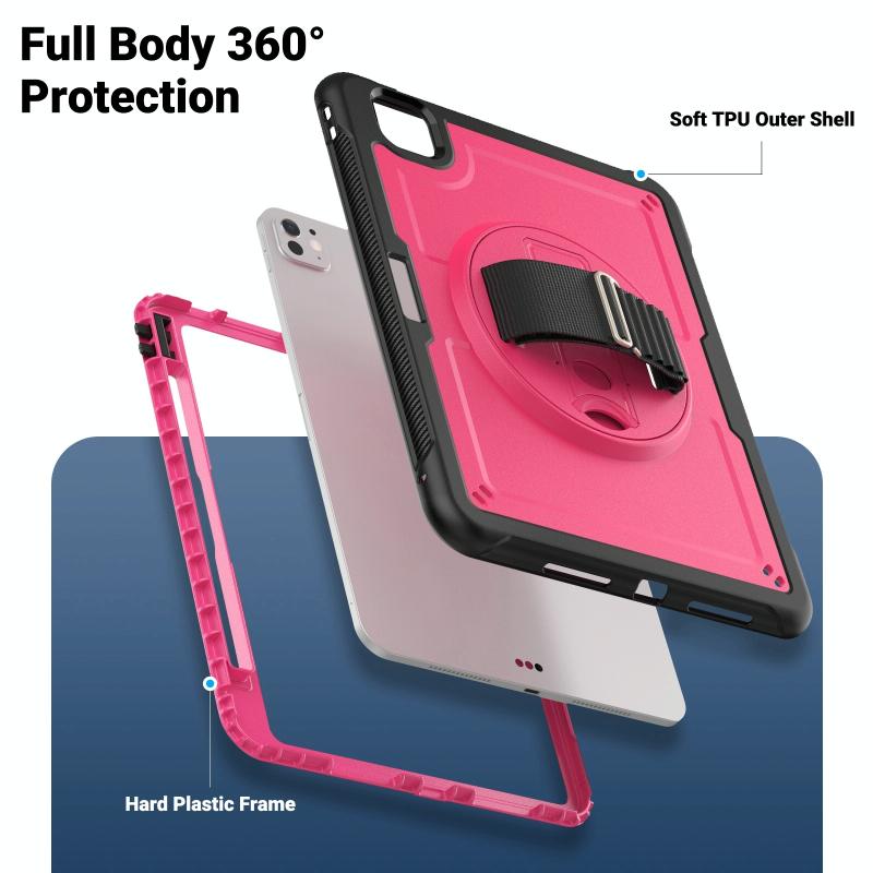 For iPad Pro 11 2024 Honeycomb Hand Grip Turntable Stand Tablet Case(Rose Red)