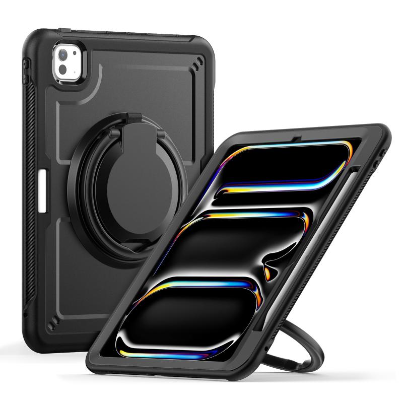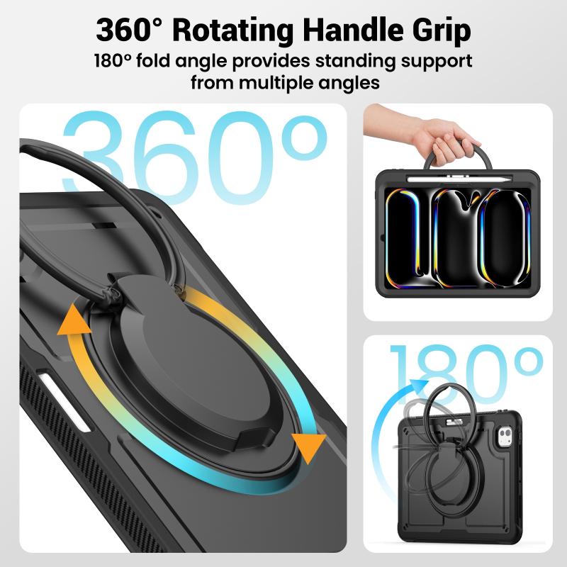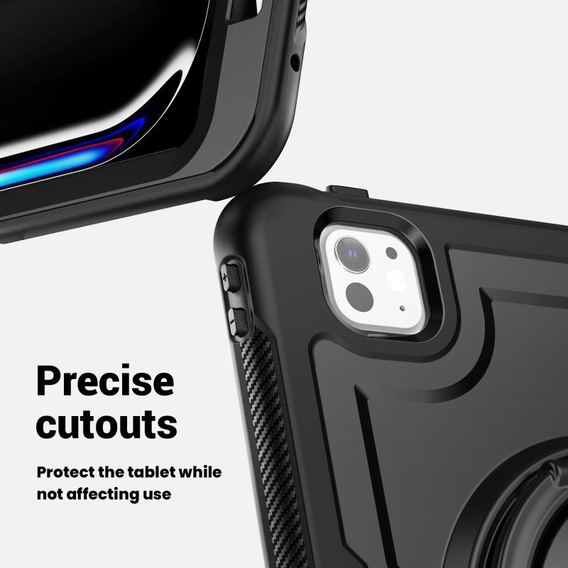 For iPad Pro 11 2024 Honeycomb Hybrid Tablet Case with Handle Holder & Strap(Black)