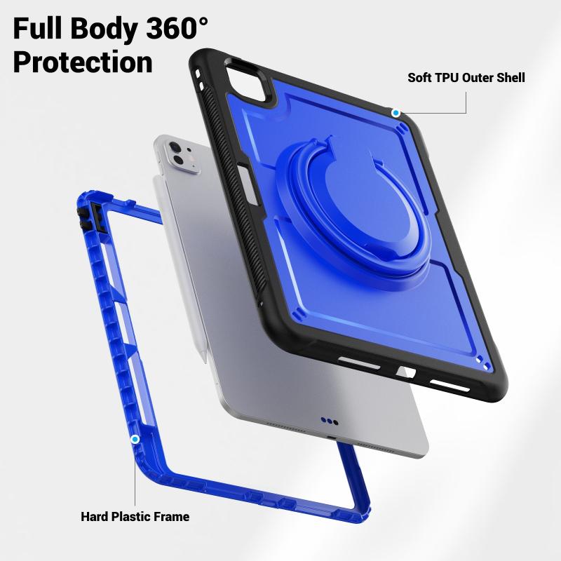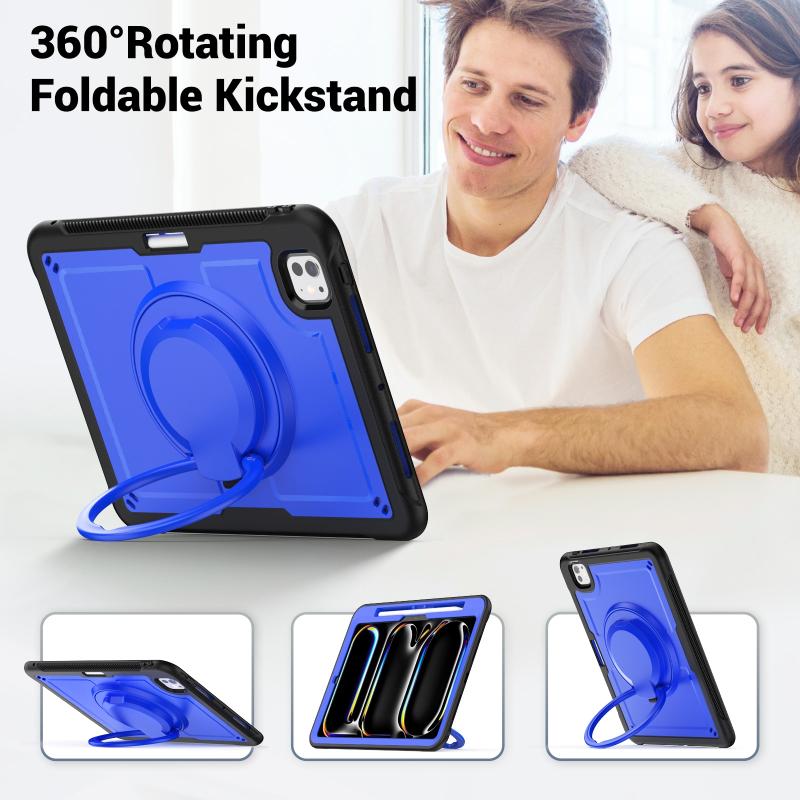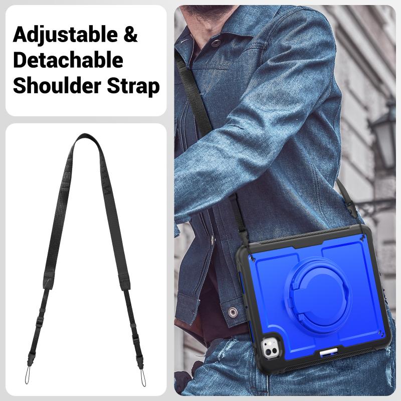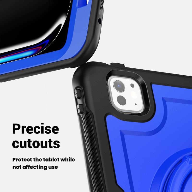 For iPad Pro 11 2024 Honeycomb Hybrid Tablet Case with Handle Holder & Strap(Dark Blue)