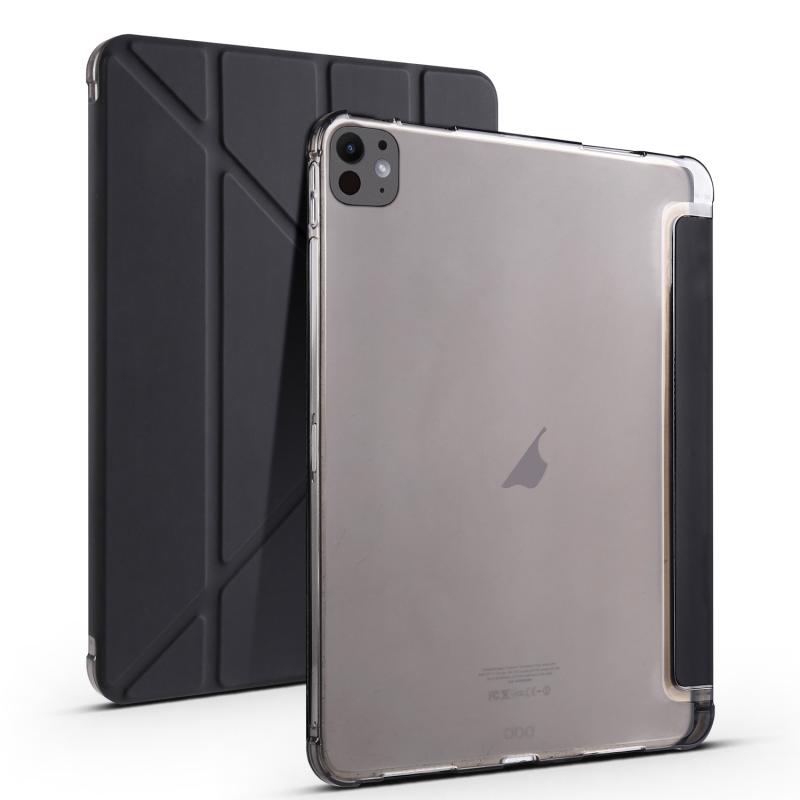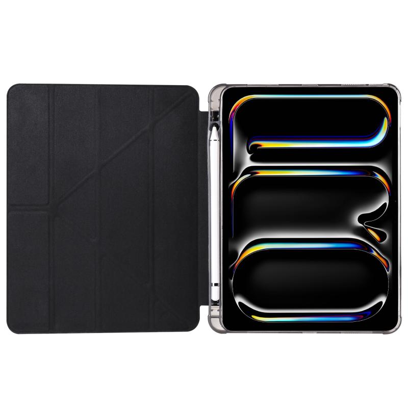 For iPad Pro 11 2024 Multi-folding TPU Leather Smart Tablet Case with Pen Slot(Black)