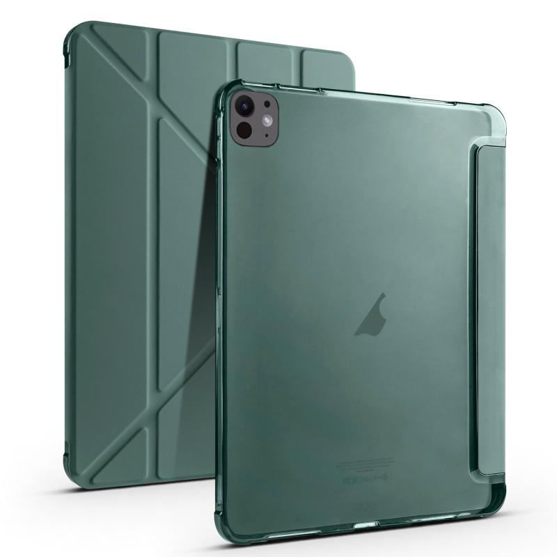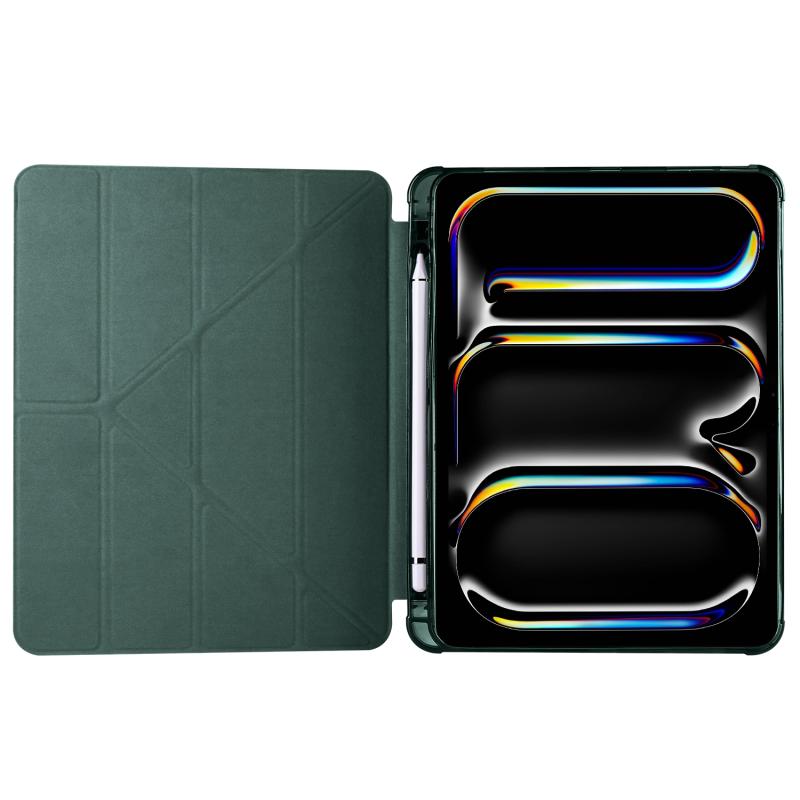 For iPad Pro 11 2024 Multi-folding TPU Leather Smart Tablet Case with Pen Slot(Pine Green)