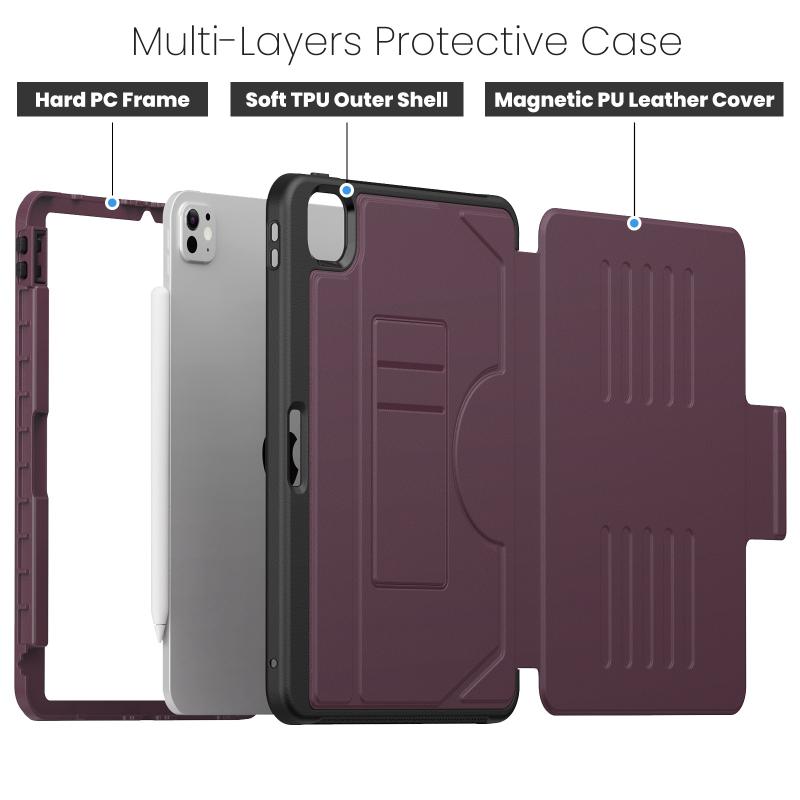 1. Durable Material: Magnetic case made of high quality PC + TPU and premium textured faux leather material, slim and lightweight design with excellent craftsmanship and feel. Prevents the tablet from scratching and bumping, fingerprints and dust. Also easy to clean.