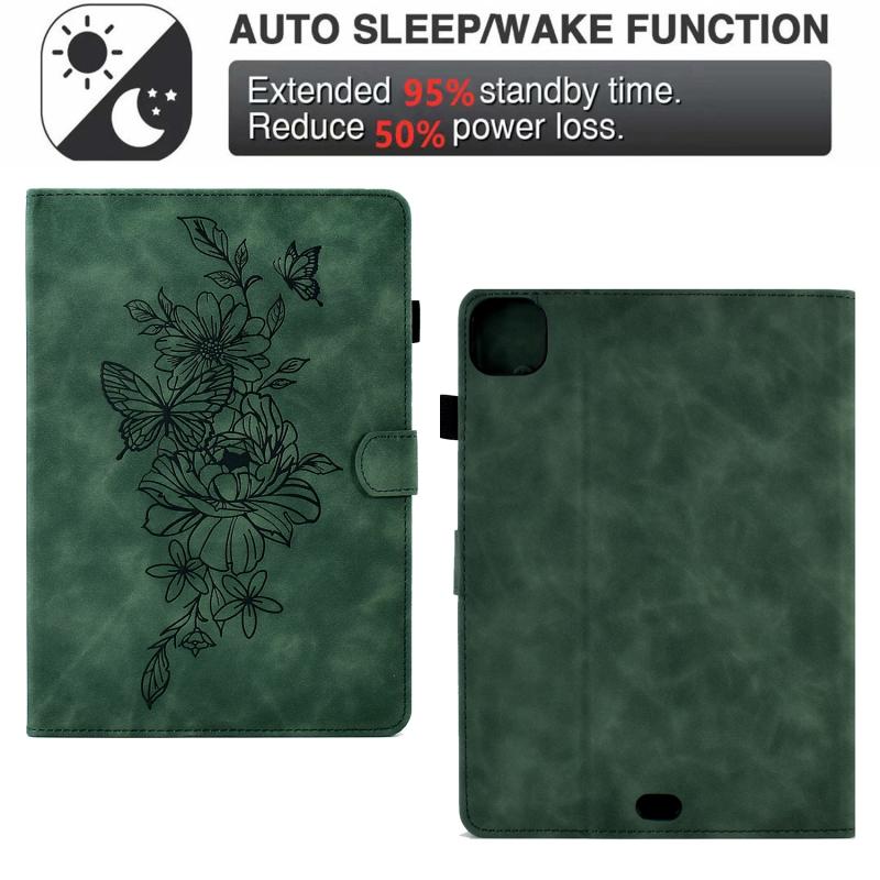 For iPad Pro 11 2024 Peony Butterfly Embossed Leather Smart Tablet Case(Green)