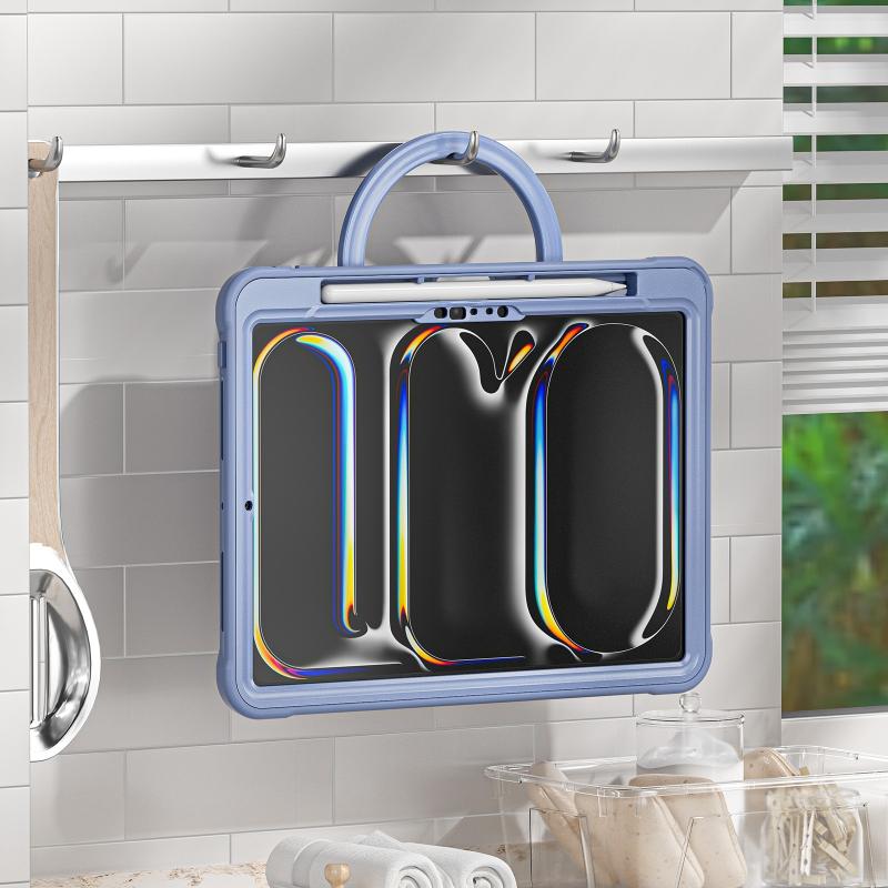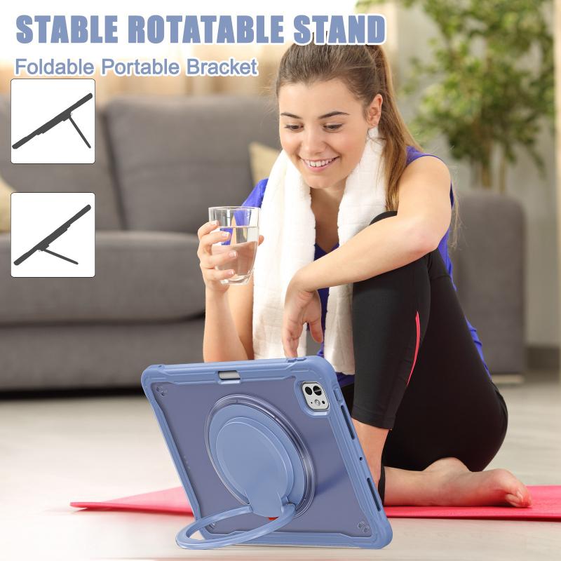 For iPad Pro 11 2024 Powerful Sailor Ring Holder Heavy Duty Hybrid Tablet Case with Strap(Lavender Grey)