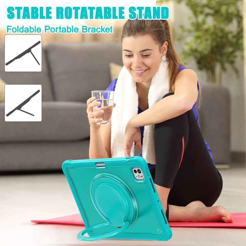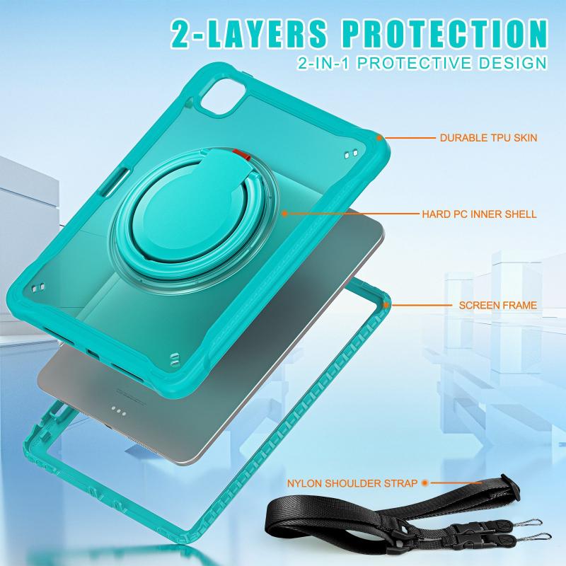 For iPad Pro 11 2024 Powerful Sailor Ring Holder Heavy Duty Hybrid Tablet Case with Strap(Light Blue)