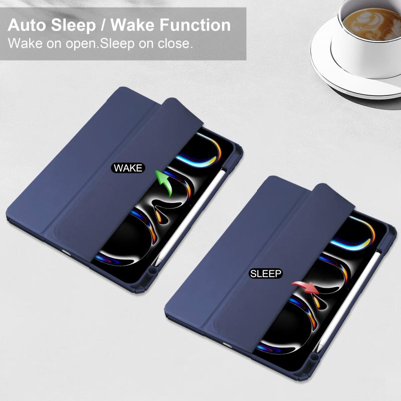 For iPad Pro 11 2024 Pure Color 3-fold Clear TPU Smart Leather Tablet Case(Dark Blue)