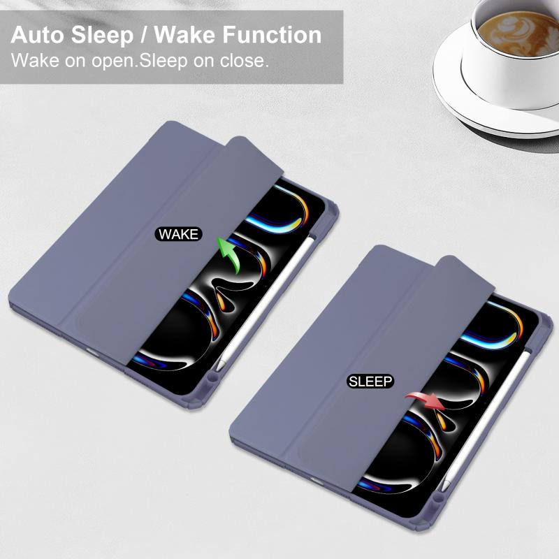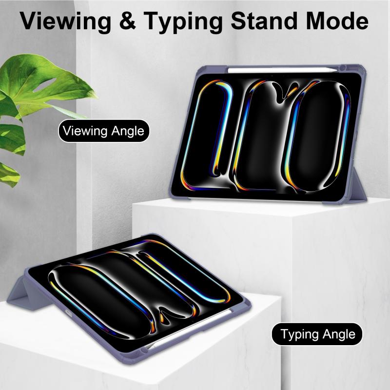 For iPad Pro 11 2024 Pure Color 3-fold Clear TPU Smart Leather Tablet Case(Lavender)