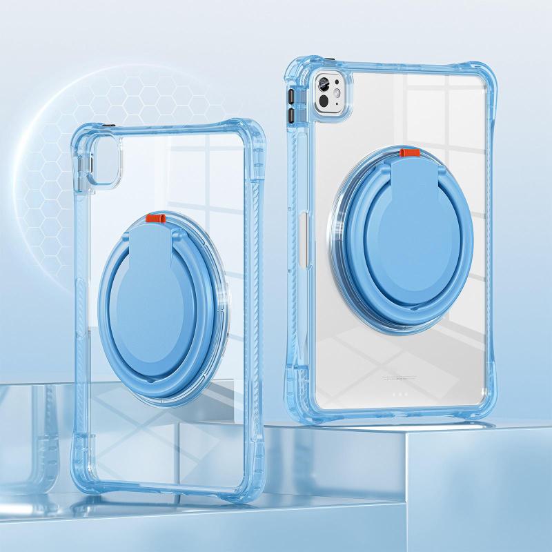 For iPad Pro 11 2024 Rotation Ring Handle TPU Hybrid Clear PC Tablet Case(Light Blue)