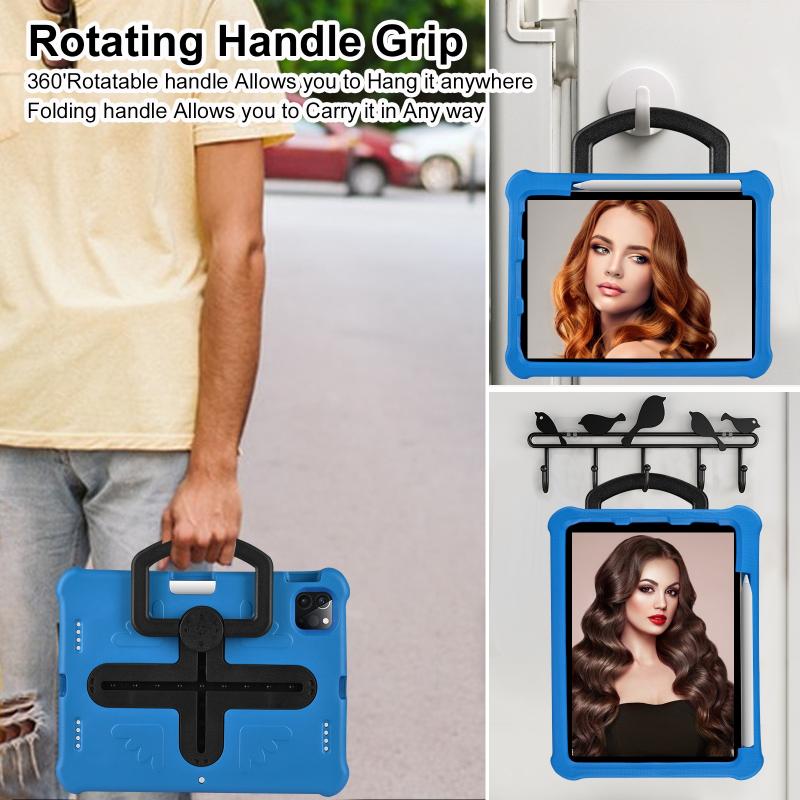 For iPad Pro 11 2024 Shield 360 Rotation Handle EVA Shockproof PC Tablet Case(Blue Black)