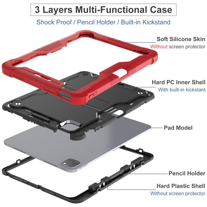 For iPad Pro 11 2024 Shockproof Silicone Hybrid PC Tablet Case with Holder(Black + Red)