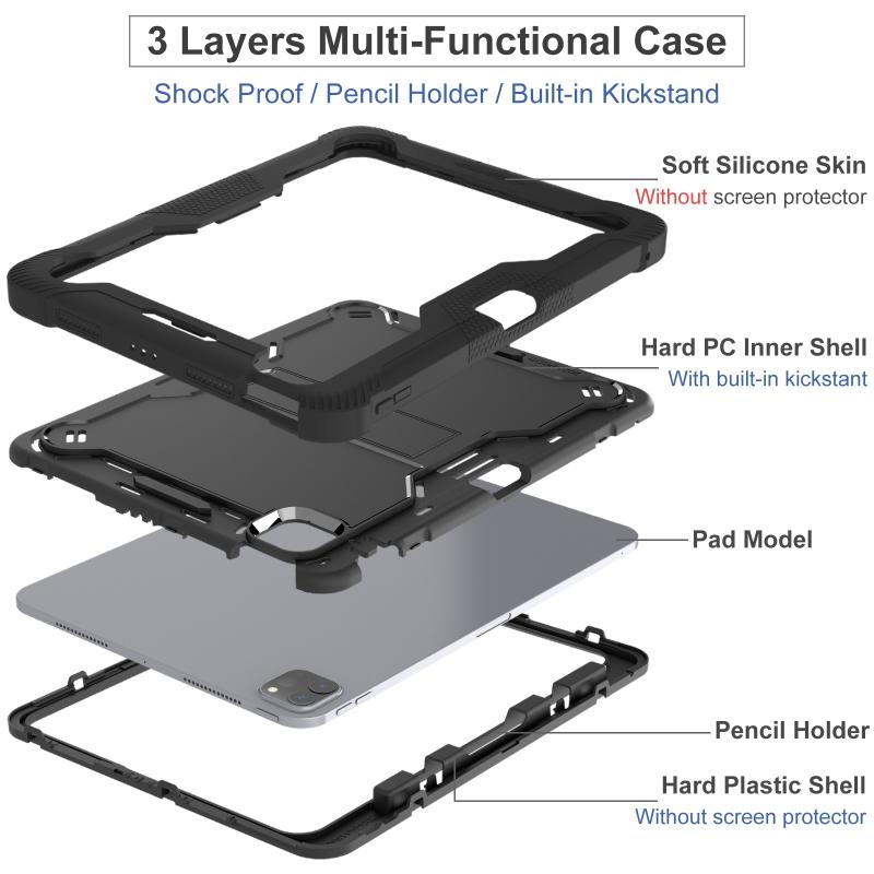 For iPad Pro 11 2024 Shockproof Silicone Hybrid PC Tablet Case with Holder(Black)
