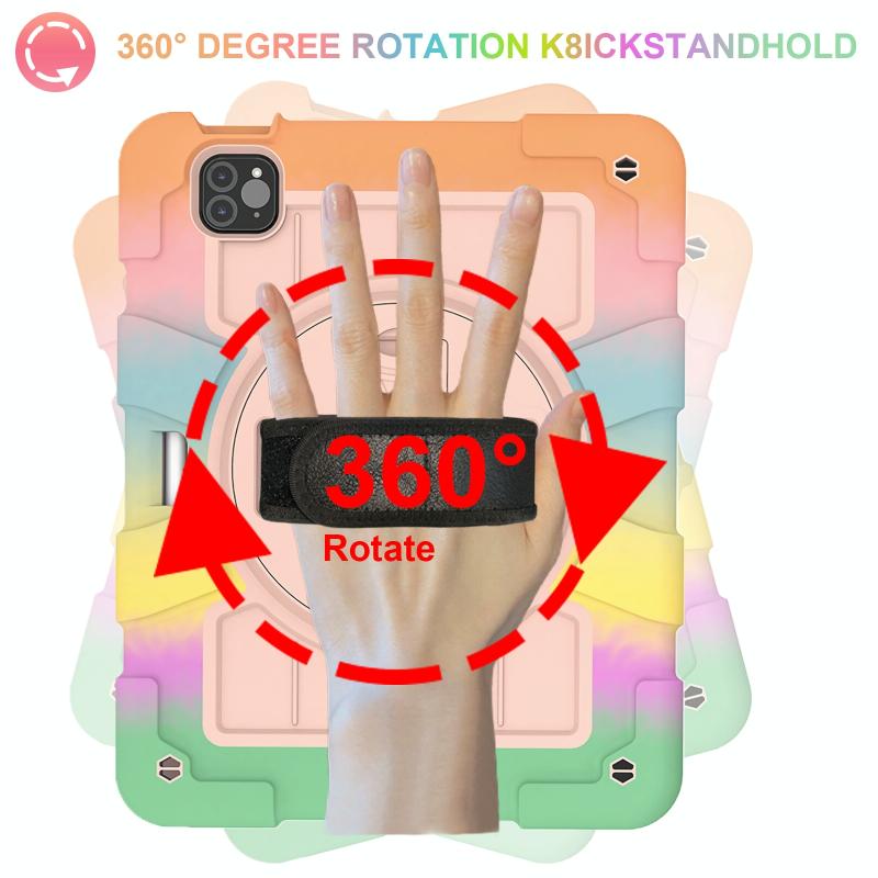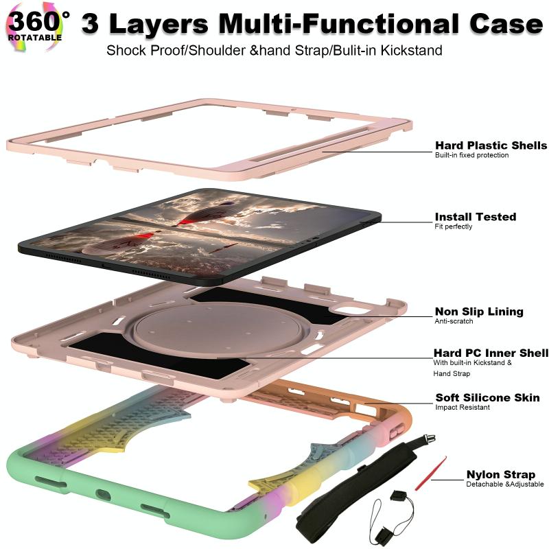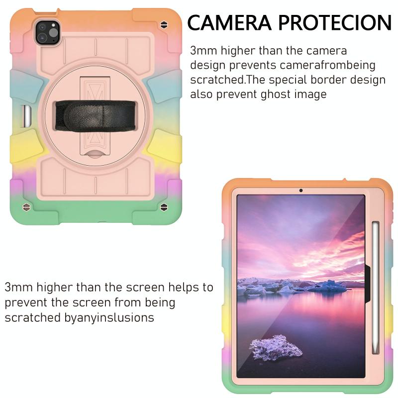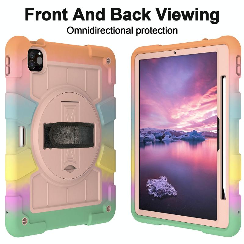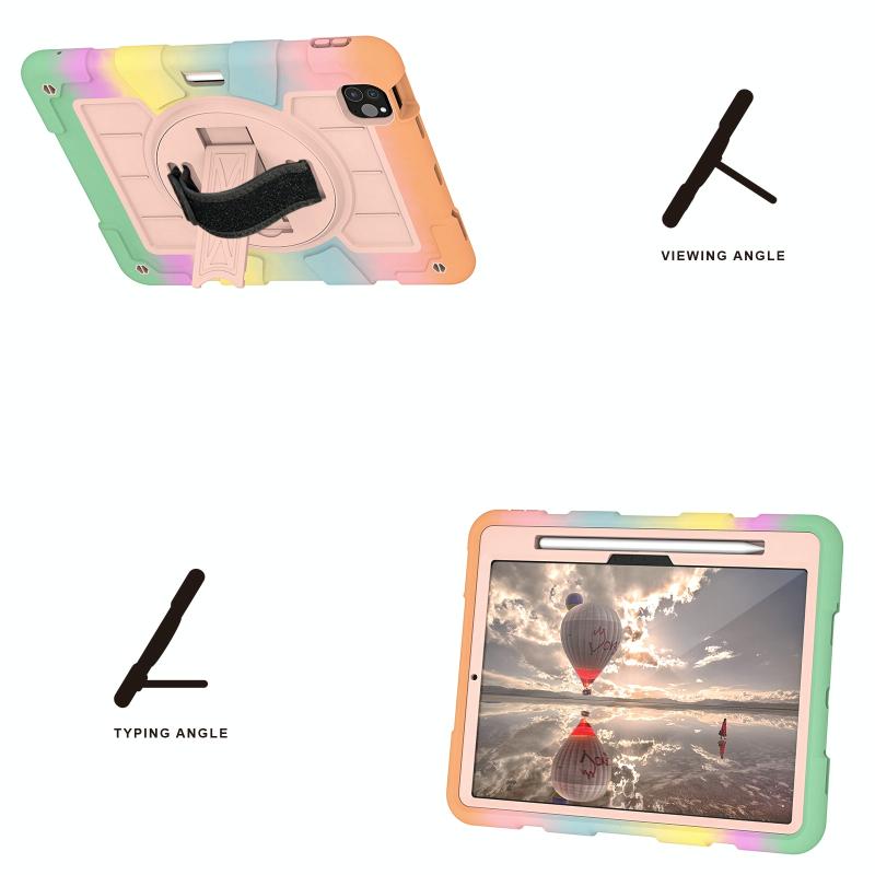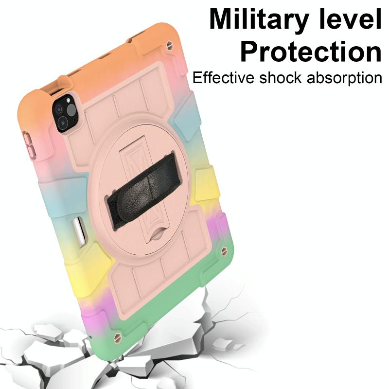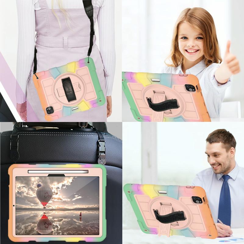 For iPad Pro 11 2024 Silicone Hybrid PC Shockproof Tablet Case with Shoulder Strap(Colorful Gold)