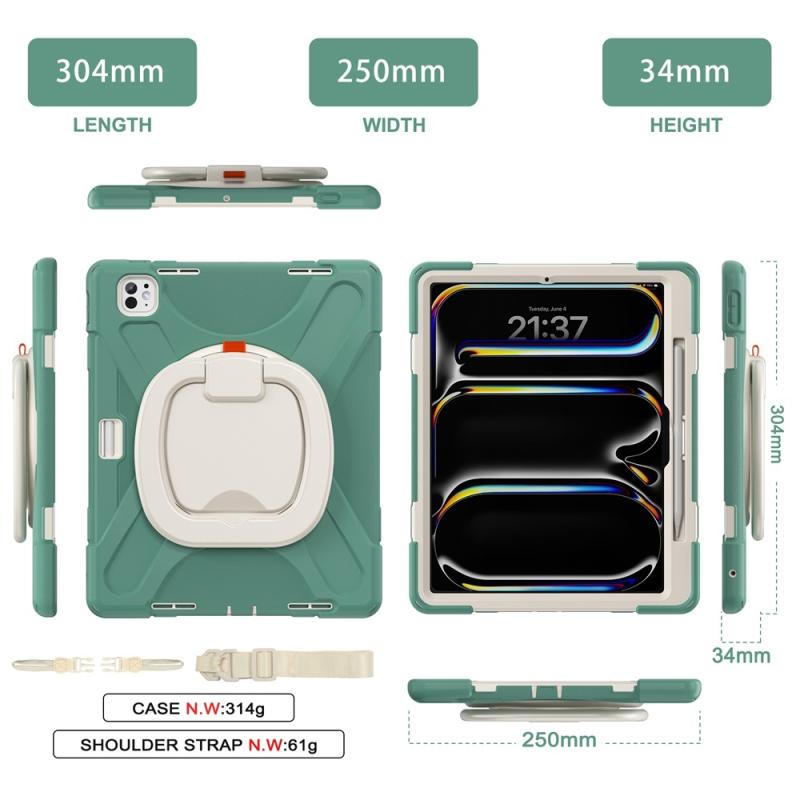 For iPad Pro 11 2024 Silicone Hybrid PC Tablet Case with Holder & Shoulder Strap(Emerald Green)
