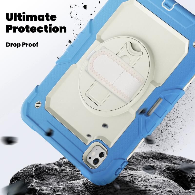 For iPad Pro 11 2024 Silicone Hybrid PC Tablet Case with Shoulder Strap(Beige + Cyan-blue)