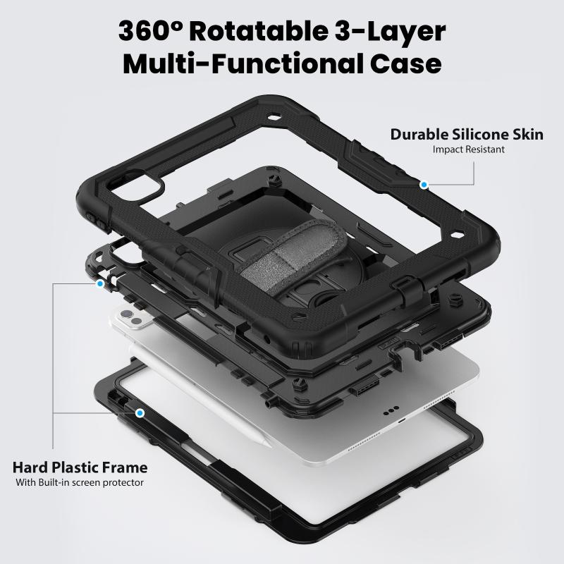 For iPad Pro 11 2024 Silicone Hybrid PC Tablet Case with Shoulder Strap(Black)