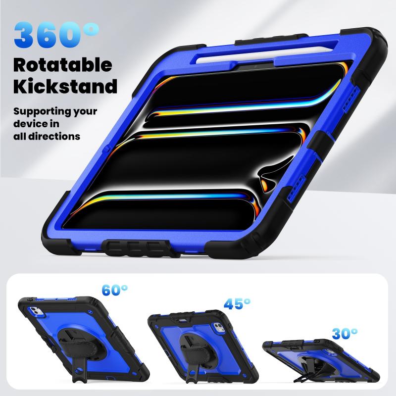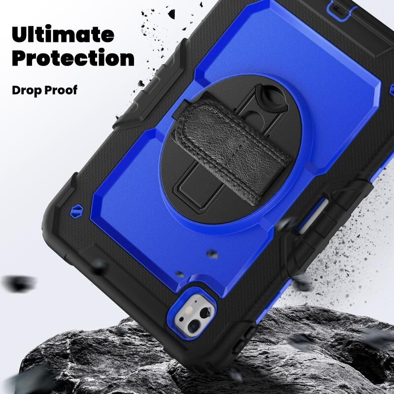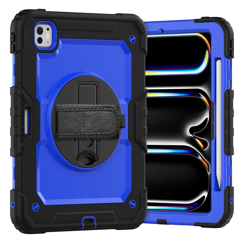 For iPad Pro 11 2024 Silicone Hybrid PC Tablet Case with Shoulder Strap(Dark Blue + Black)