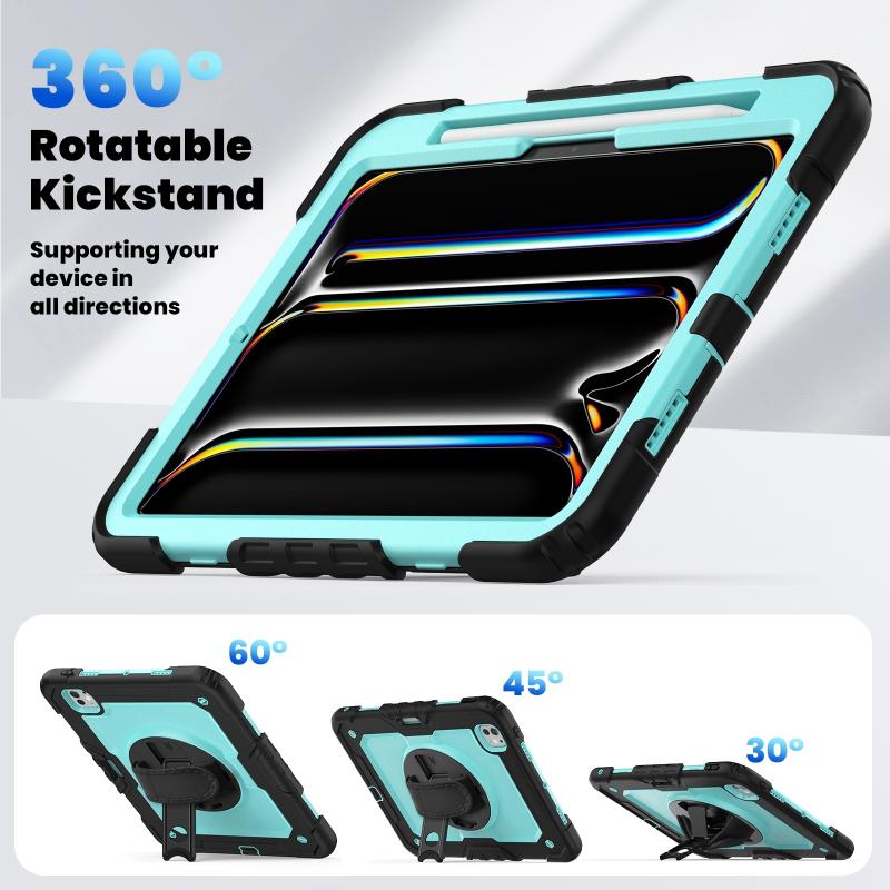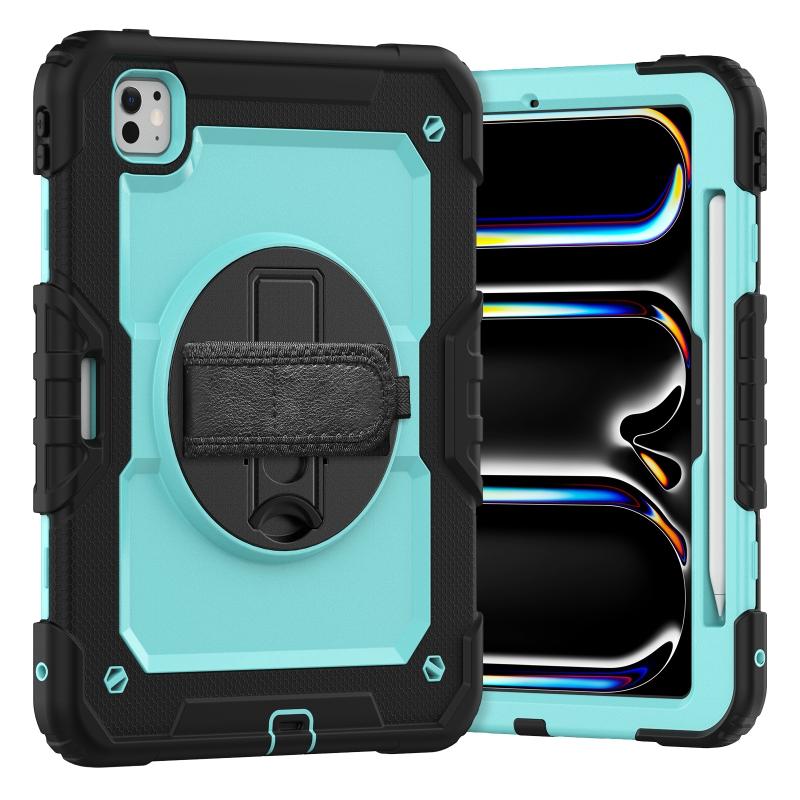 For iPad Pro 11 2024 Silicone Hybrid PC Tablet Case with Shoulder Strap(Light Blue + Black)