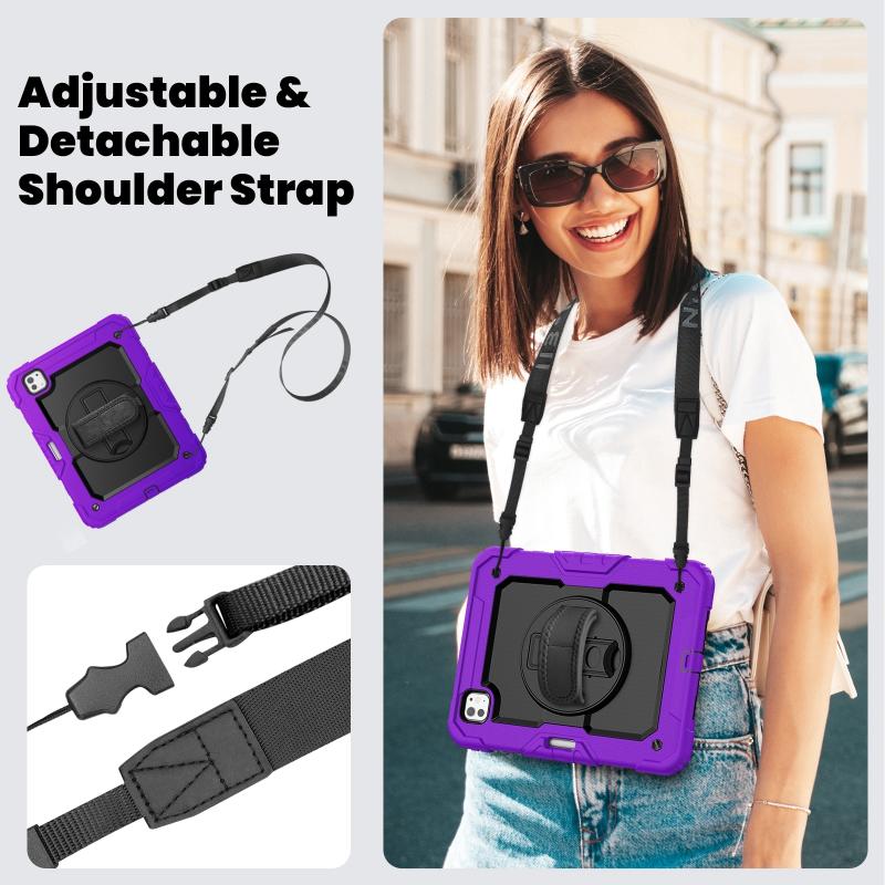For iPad Pro 11 2024 Silicone Hybrid PC Tablet Case with Shoulder Strap(Purple)