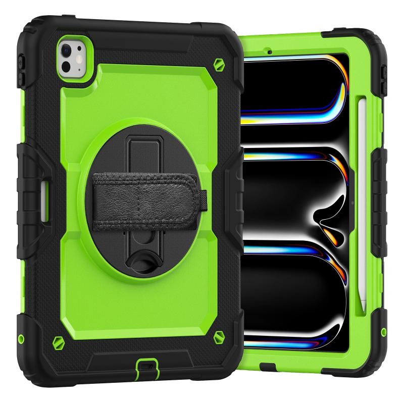 For iPad Pro 11 2024 Silicone Hybrid PC Tablet Case with Shoulder Strap(Yellow Green + Black)