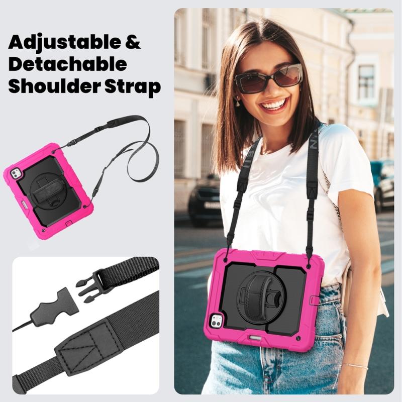 For iPad Pro 11 2024 Silicone Hybrid PC Tablet Protective Case(Black+Rose Red)