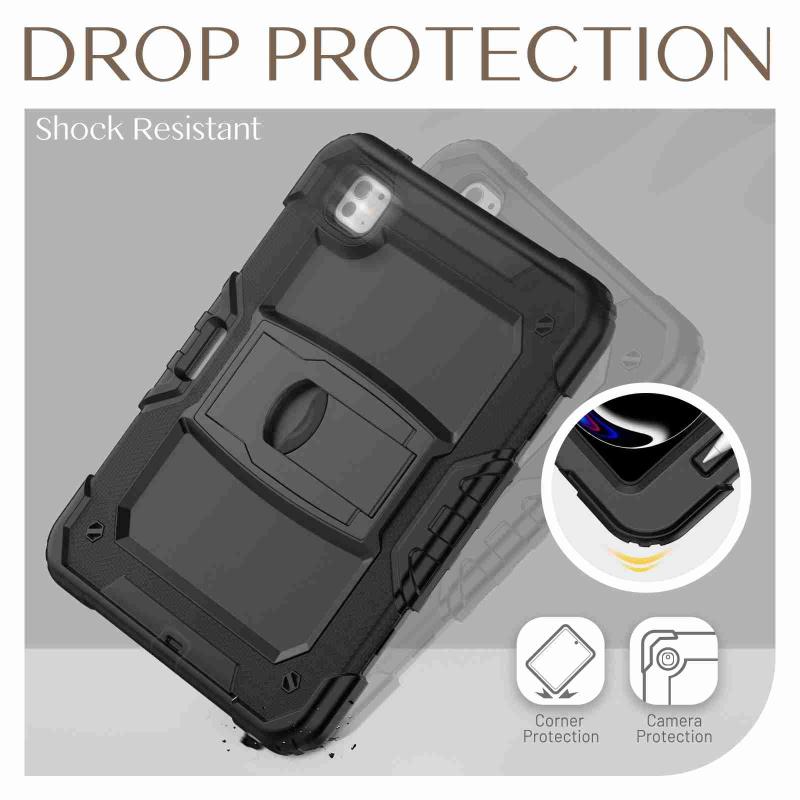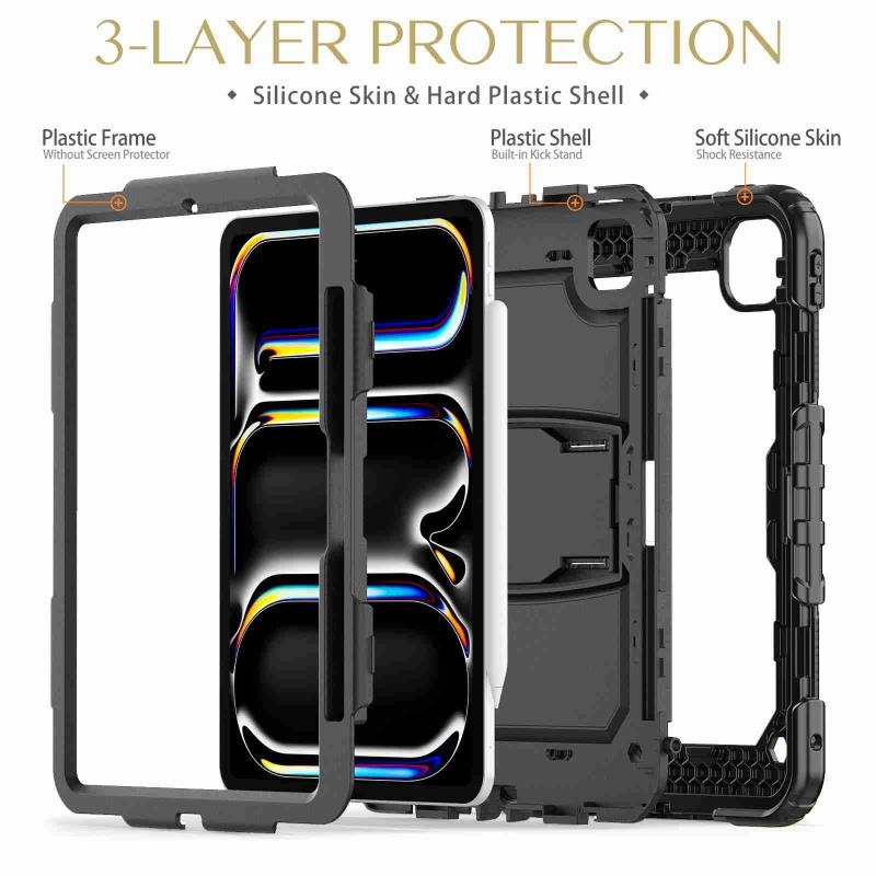 For iPad Pro 11 2024 Silicone Hydric PC Tablet Case with Shoulder Strap & Holder(Black)