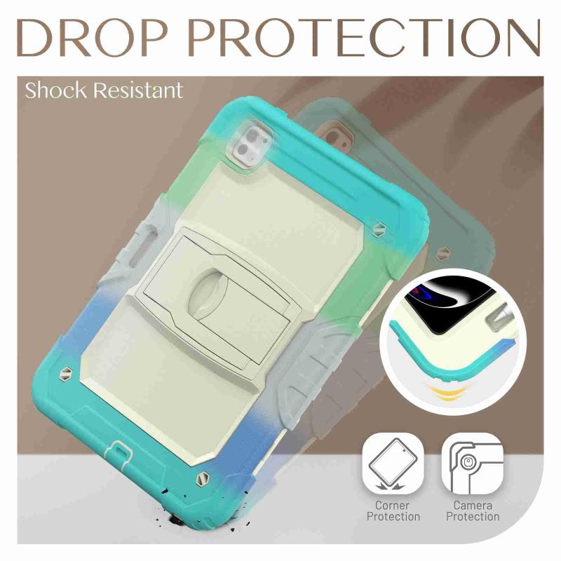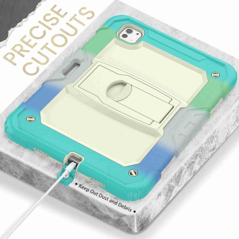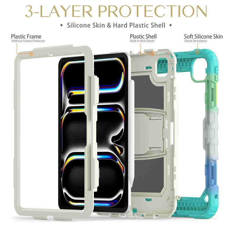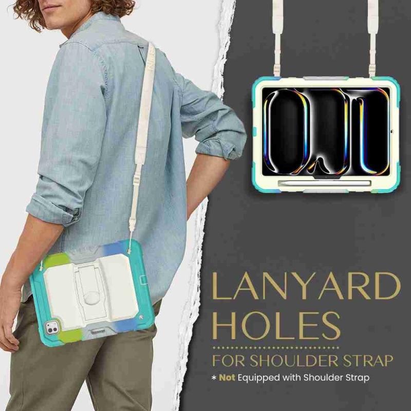 For iPad Pro 11 2024 Silicone Hydric PC Tablet Case with Shoulder Strap & Holder(Camouflage Light Blue)