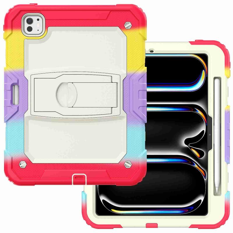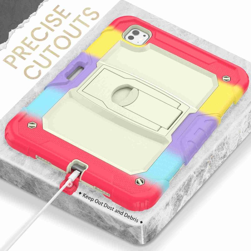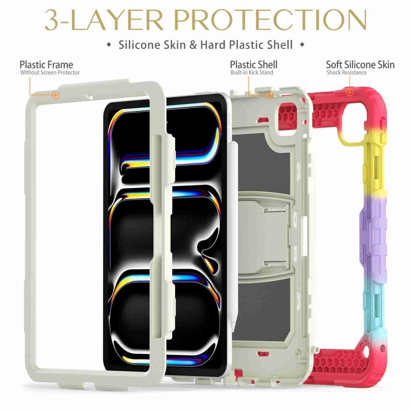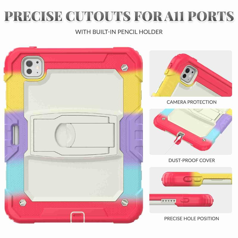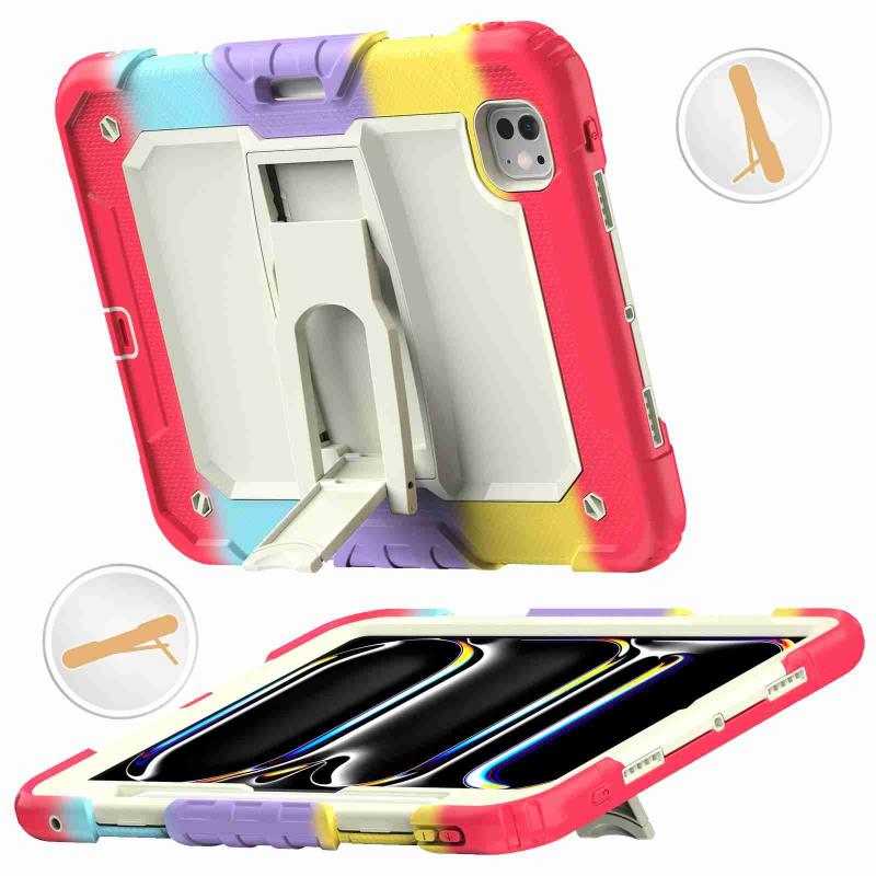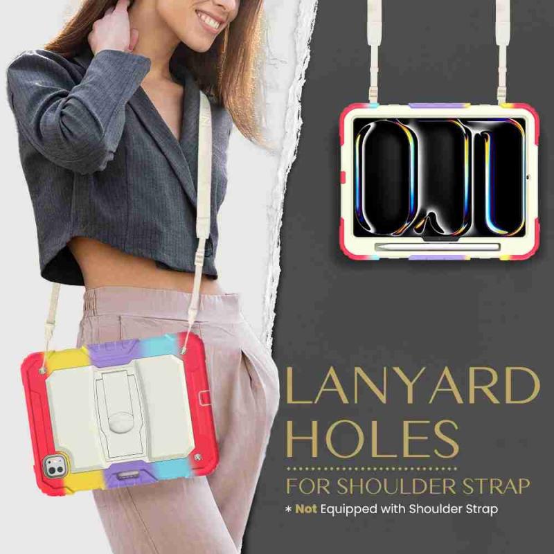 For iPad Pro 11 2024 Silicone Hydric PC Tablet Case with Shoulder Strap & Holder(Camouflage Red)