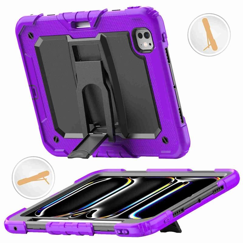 For iPad Pro 11 2024 Silicone Hydric PC Tablet Case with Shoulder Strap & Holder(Purple)